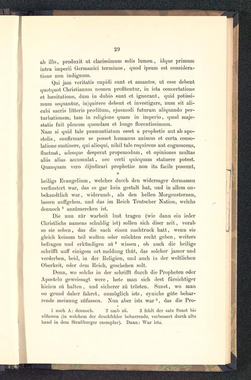 Die nun zur warheit lust tragen (wie dann ein iederChristlichs namens schuldig ist) sollen sich diser zeit, vorabso sie sehen, das die sach einen nachtruck hatt, wenn siegleich keinem teil wolten oder möchten recht geben, weitersbefragen und erkündigen zu 2 wissen, ob auch die heiligeschrifft auff einigem ort meidung thüt, das solcher jamer undverderben, beid, iu der Religion, und auch in der weltlichenOberkeit, oder dem Reich, geschehen solt.