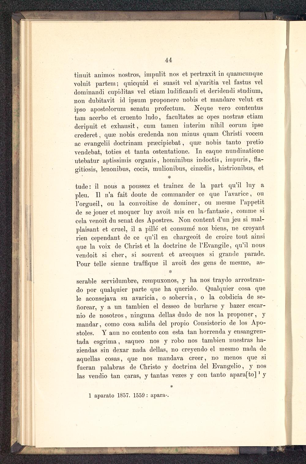 tinuit animos nostrds, impulit no.s et pertraxit in quamcunquevoluit partem; quicquid ei snasit vel ajvaritia vel fastus veldominandi cupiditas vel etiara ludificandi et deridendi studium,non dubitavit id ipsnm proponere nobis et mandare velut exipso apostnlorum senäta profeetum. Neque vero contentustarn acerbo et cruento ludo, facultates ac opes nostras- etiamderipuit et exhansit, cum tarnen interim nihil eorum ipsecrederet, qua? nobis credenda non minus quam Christi vocemac evangelii cloctrinam prtecipiebat, quae nobis tanto pretiovendebat, toties et tanta ostentatione. In eaquo nundinationeutebatur aptissimis organis, hominibus indoctis, inipuris, fla-gitiosis, lenonibus, cocis, mulionibus, cinasdis, histrionibus, et