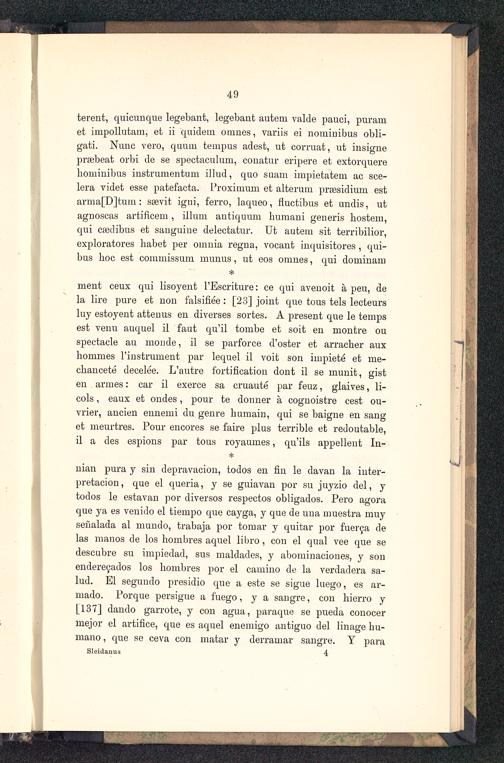 terent, quicunque legebant, legebant autem valde pauci, puramet impollutam, et ii quidein omnes, variis ei nominibus obli-gati. Nunc vero, quum tempus adest, ut corruat, ut insignepraebeat orbi de se spectaculum, conatur eripere et extorquerehominibua instrumehtum illud, quo suam impietatem ac sce-lera videt esse patefacta. Proximum et alterum prsesidium estarma[D]tum: ssevit igni, ferro, laqueo, fluctibus et undis, utaguoscas artifLcem , illum antiquum humani generis bostera,qui caidibus et sauguine delectatur. Ut autem sit terribilior,exploratores babet per omnia regna, vocant inquisitores, qui-bus boc est commissum munua, ut eos omnes, qui dominam