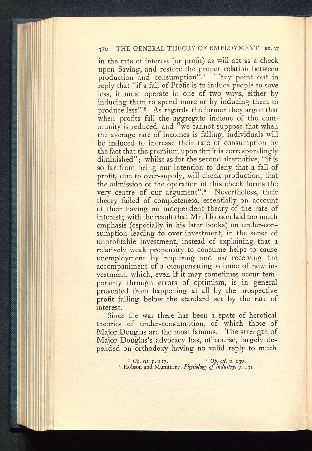 Since the war there has been a spate of hereticaltheories of under-consumption, of which those ofMajor Douglas are the most famous. The strength ofMajor Douglas ’s advocacy has, of course, largely de-pended on orthodoxy having no valid reply to much
