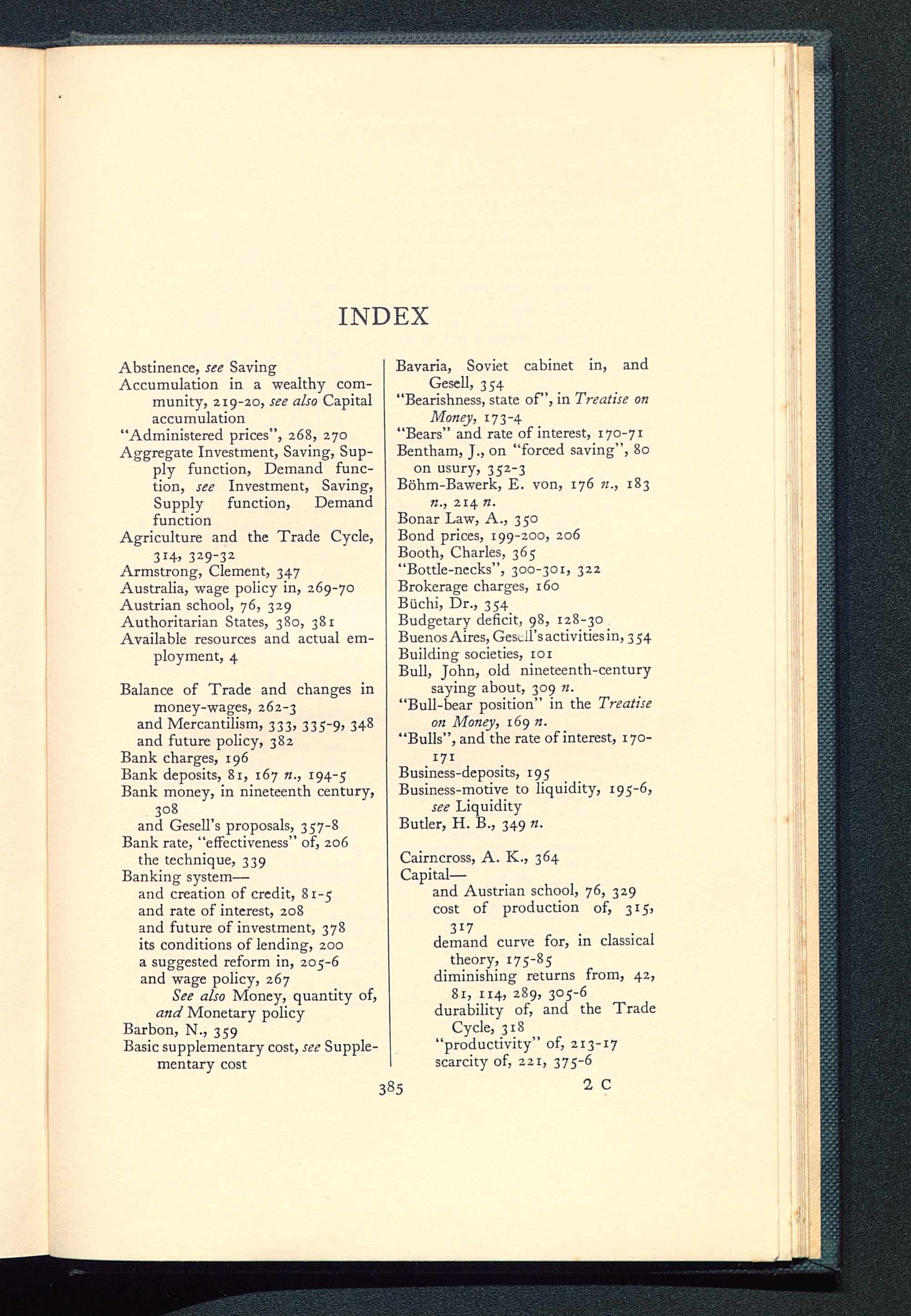 Business-deposits, 195Business-motive to liquidity, 195-6,see LiquidityButler, H. B., 349 n.