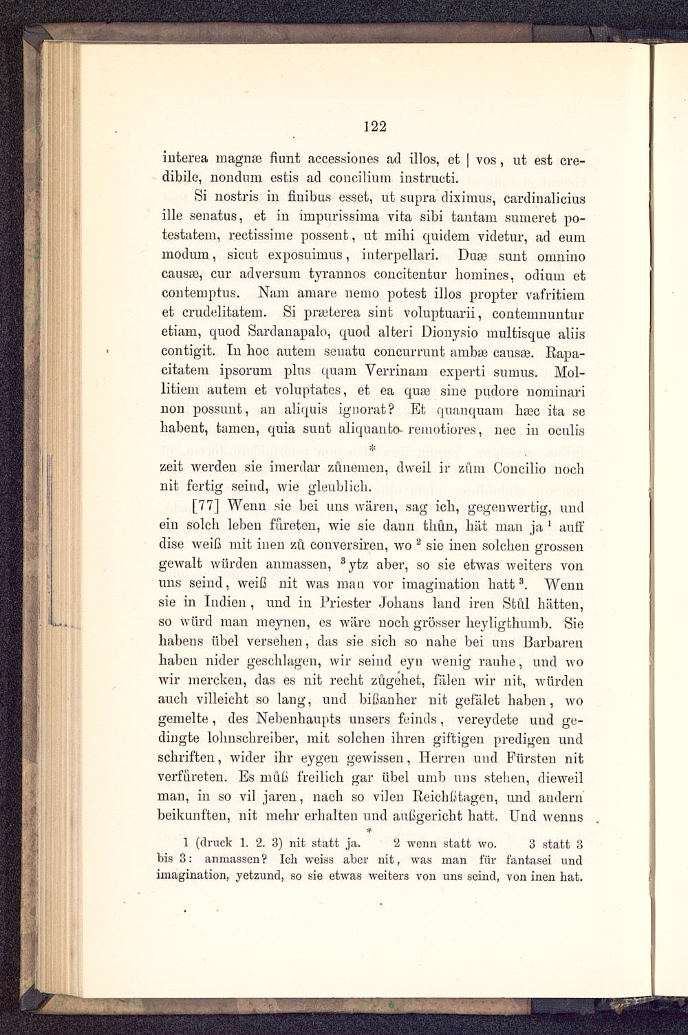 [77] Wenn sie bei uns wären, sag ich, gegenwertig, undein solch leben fureten, wie sie dann thun, hat man ja 1 auffdise weiß mit inen zu conversiren, wo 2 sie inen solchen grossengewalt würden anmassen, 3 ytz aber, so sie etwas weiters vonuns seind, weiß nit was mau vor imagination hatt 3 . Wennsie in Indien , und in Priester Johans land iren Stül hätten,so würd man meynen, es wäre noch grösser heyligthumb. Siehabens übel versehen, das sie sich so nahe bei uns Barbarenhaben nider geschlagen, wir seind eyu wenig rauhe, und wowir mercken, das es nit recht zugehet, fälen wir nit, würdenauch villeicht so lang, und bißanher nit gef'älet haben, wogemelte, des Nebenhaupts unsers feinds, vereydete und ge-dingte lolmschreiber, mit solchen ihren giftigen predigen undSchriften, wider ihr eygen gewissen, Herren und Pürsten nitverfüreten. Es muß freilich gar übel umb uns stellen, dieweilman, in so vi] jaren, nach so vilen Reichßtagen, und andernbeikunften, nit mehr erhalten und außgericht hatt. Und wenns