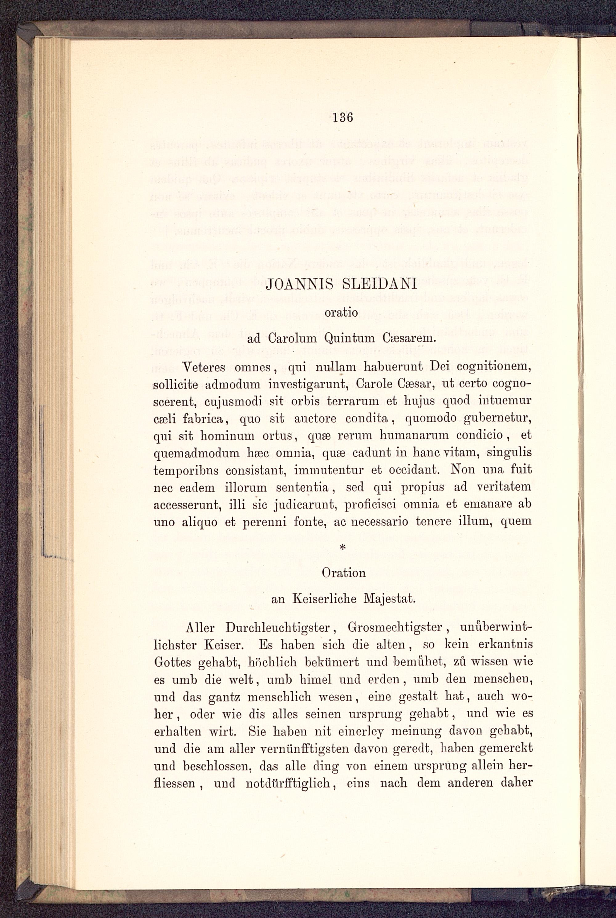 Aller Durchleuchtigster, Grosmechtigster, unuberwint-lichster Keiser. Es haben sich die alten , so kein erkantnisGottes gehabt, höchlich bekümert und bemühet, zu wissen wiees umb die weit, urab himel und erden, umb den menschen,und das gantz menschlich wesen, eine gestalt hat, auch wo-her , oder wie dis alles seinen Ursprung gehabt, und wie eserhalten wirt. Sie haben nit einerley meinung davon gehabt,und die am aller vernünfftigsten davon geredt, haben gemercktund beschlossen, das alle ding von einem Ursprung allein her-fliessen , und notdürfftiglich, eins nach dem anderen daher
