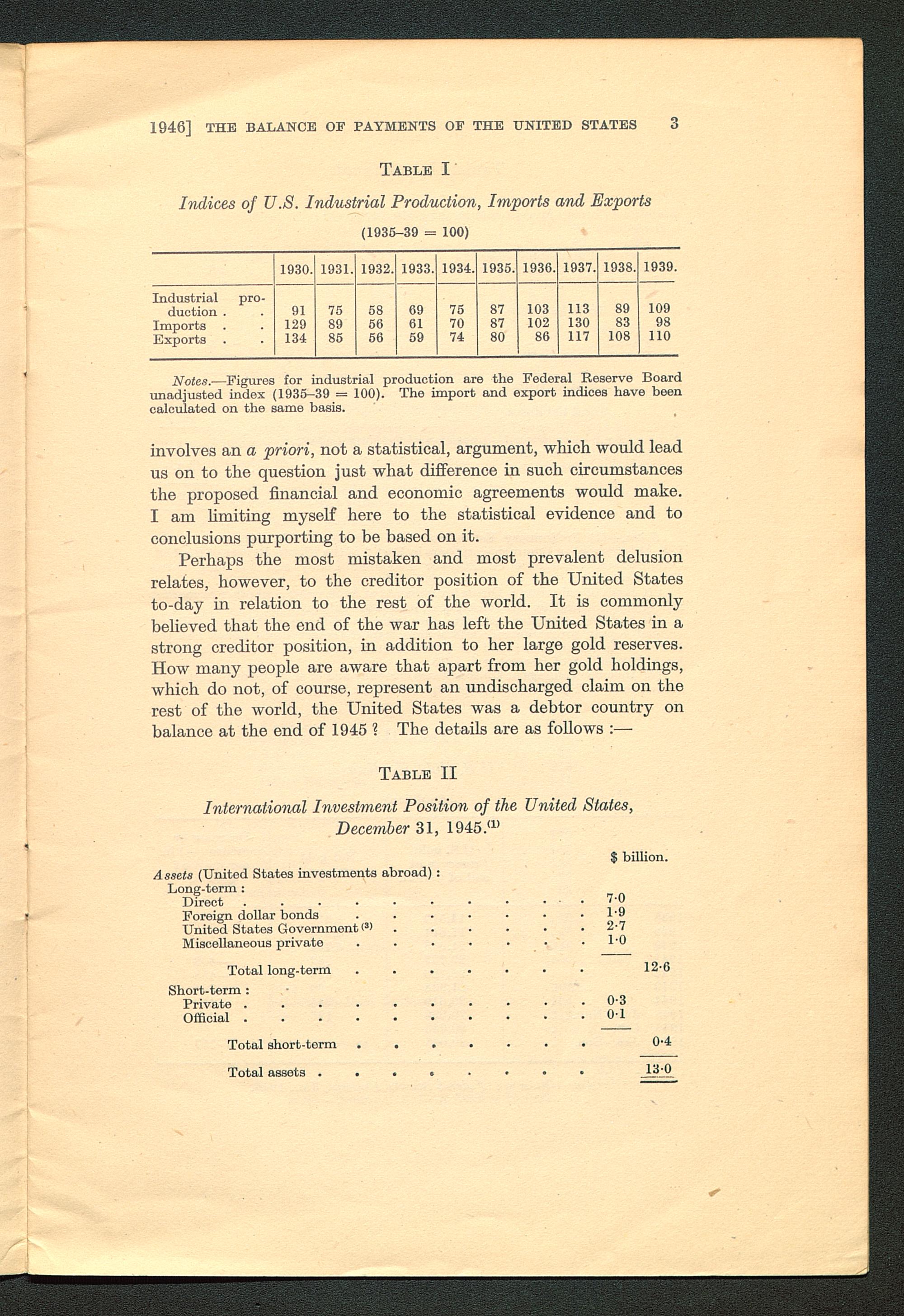 Notes. —Figures for industrial production are the Federal Reserve Board unadjusted index (1935-39 = 100). The import and export indices have beencalculated on the same basis.