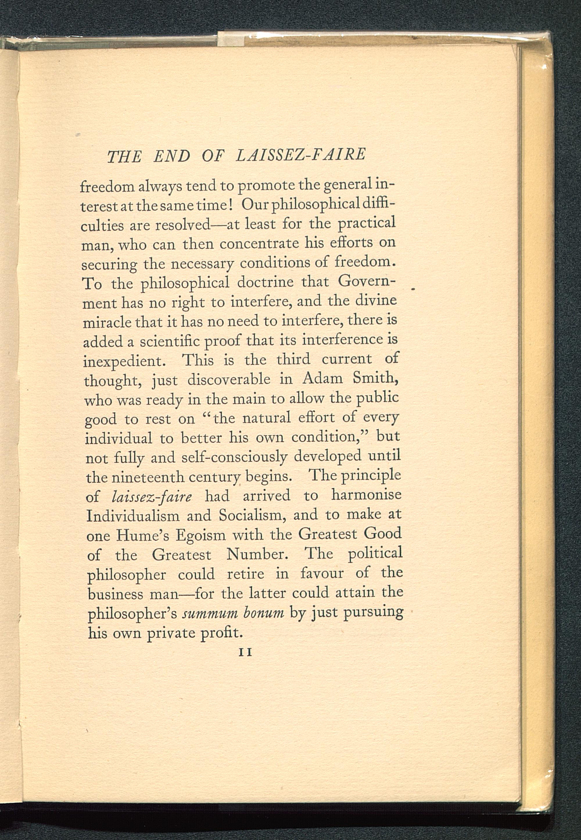 freedom always tend to promote the general in-terest at the same time! Our philosophical diffi-culties are resolved—at least for the practicalman, who can then concentrate his efforts onsecuring the necessary conditions of freedom.To the philosophical doctrine that Govern-ment has no right to interfere, and the divinemiracle that it has no need to interfere, there isadded a scientific proof that its interference isinexpedient. This is the third current ofthought, just discoverable in Adam Smith ,who was ready in the main to allow the publicgood to rest on “the natural effort of everyindividual to better his own condition,” butnot fully and self-consciously developed untilthe nineteenth century begins. The principleof laissez-faire had arrived to harmoniseIndividualism and Socialism, and to make atone Hume’ s Egoism with the Greatest Goodof the Greatest Number. The politicalphilosopher could retire in favour of thebusiness man—for the latter could attain thephilosopher’s summurn bonum by just pursuinghis own private profit.