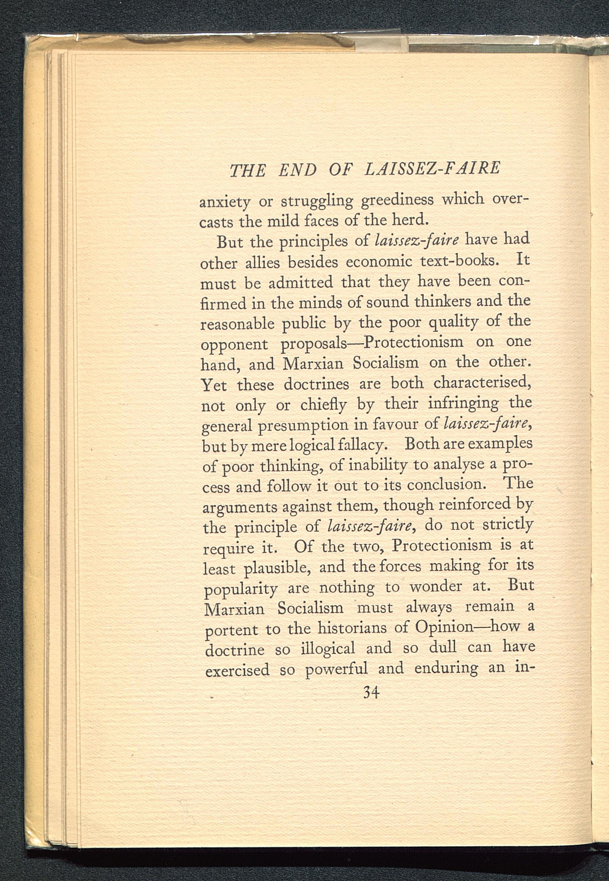 But the principles of laissez-faire have hadother allies besides economic text-books. Itmust be admitted that they have been con-firmed in the minds of sound thinkers and thereasonable public by the poor quality of theopponent proposals—Protectionism on onehand, and Marxian Socialism on the other.Yet these doctrines are both characterised,not only or chiefly by their infringing thegeneral presumption in favour of laissez-faire ,but by mere logical fallacy. Both are examplesof poor thinking, of inability to analyse a pro-cess and follow it out to its conclusion. Thearguments against them, though reinforced bythe principle of laissez-faire, do not strictlyrequire it. Of the two, Protectionism is atleast plausible, and the forces making for itspopularity are nothing to wonder at. ButMarxian Socialism must always remain aportent to the historians of Opinion—how adoctrine so illogical and so dull can haveexercised so powerful and enduring an in-
