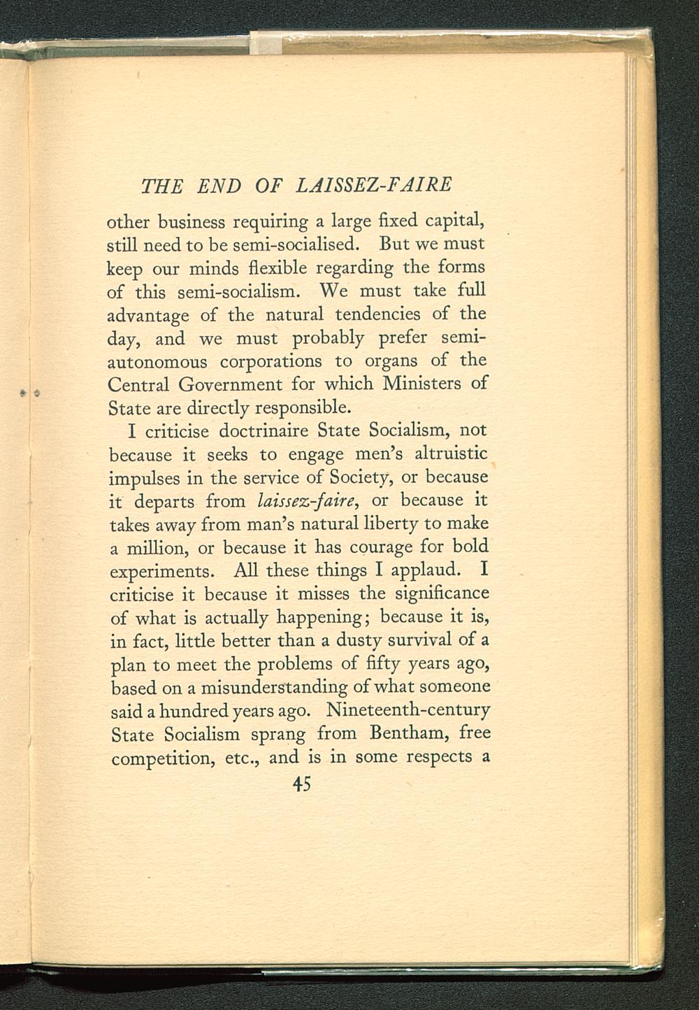 I criticise doctrinaire State Socialism, notbecause it seeks to engage men’s altruisticimpulses in the service of Society, or becauseit departs from laissez-faire, or because ittakes away from man’s natural liberty to makea million, or because it has courage for boldexperiments. All these things I applaud. Icriticise it because it misses the significanceof what is actually happening; because it is,in fact, little better than a dustv survival of aplan to meet the problems of fifty years ago,based on a misunderstanding of what someonesaid a hundred years ago. Nineteenth-centuryState Socialism sprang from Bentham, freecompetition, etc., and is in some respects a45