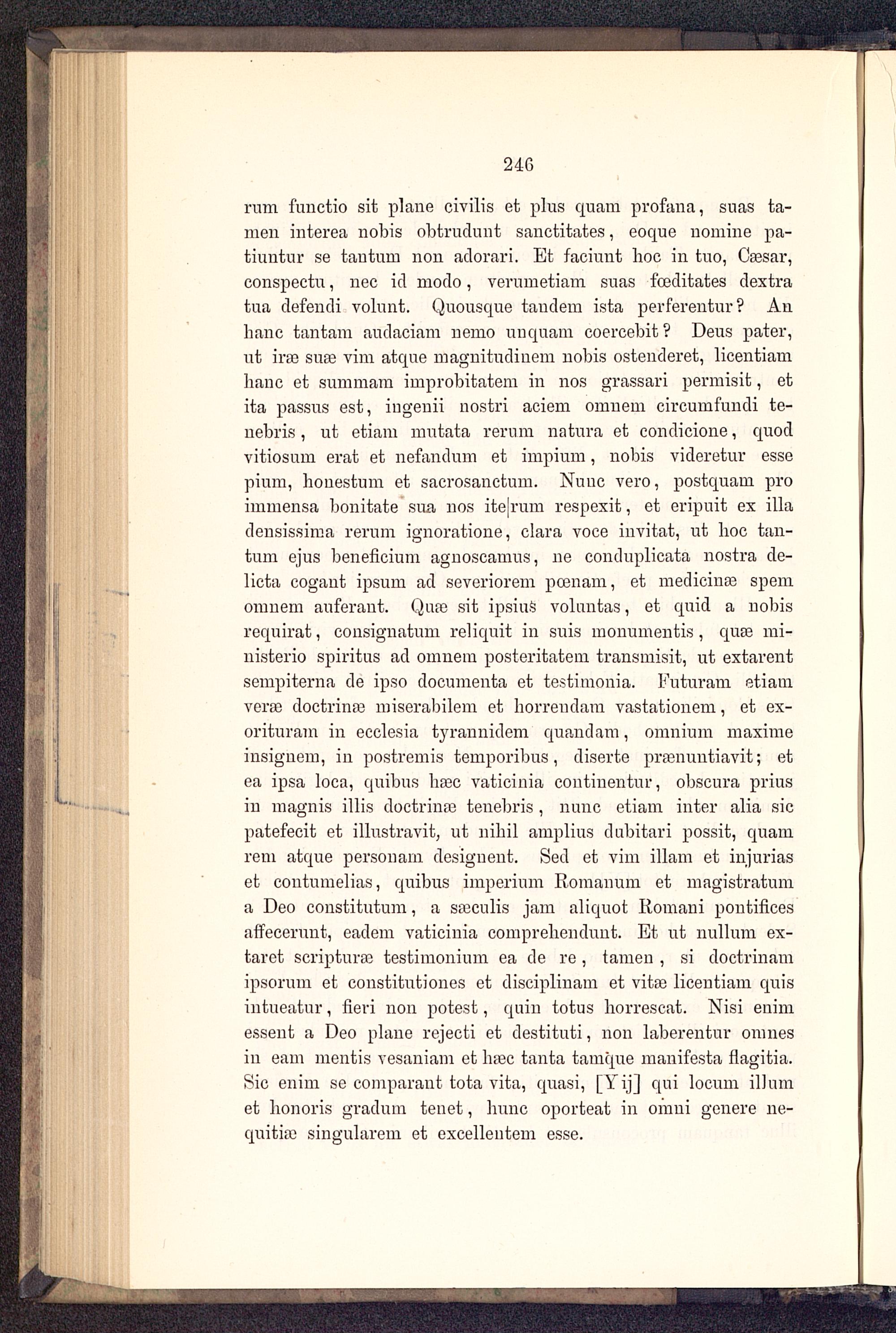 rum functio sit plane civilis et plus quam profana, suas ta-rnen interea nobis obtrudunt sanctitates, eoque nomine pa-tiuntur se tautum non adorari. Et faciunt hoc in tuo, Caasar,conspectu, nec id modo, vernmetiam suas fceditates dextratua defendi volnnt. Quouscpie taudem ista perferentur ? Anhanc tantam audaciam nemo unquam coercebit ? Deus pater,ut irae sua? vim atque magnitudiuem nobis ostenderet, licentiamlianc et summam improbitatem in nos grassari permisit, etita passus est, ingenii nostri aciem omnem circumfundi te-nebris , ut etiam mutata rerum natura et condicione, quodvitiosum erat et nefandum et impium, nobis videretur essepium, honestum et sacrosanctum. Nunc vero, postquam proimmensa bonitate sua nos itejrum respexit, et eripuit ex illadensissima rerum ignoratione, clara voce invitat, ut boc tan-tum ejus beneficium aguoscamus, ne conduplicata nostra de-licta cogaut ipsum ad severiorem pcenam, et medicina3 spemomnem auferant. Qiue sit ipsius voluntas, et quid a nobisrequirat, consignatum reliquit in suis monumentis, quas mi-nisterio Spiritus ad omnem posteritatem transmisit, ut extarentsempiterna de ipso documenta et testimonia. Futnram etiamveras doctrina? miserabilem et borrendam vastationem, et ex-orituram in ecclesia tyrannidem quandam, omnium maximeinsignem, in postremis temporibus, diserte prsenuntiavit; etea ipsa loca, quibns ha3c vaticinia continentur, obscura priusin magnis Ulis doctrinas tenebris , nunc etiam inter alia siepatefecit et illustravit, ut nihil amplius dubitari possit, quamrem atque personain desiguent. Sed et vim illam et injuriaset contmnelias, quibns imperinm Romanum et magistratuma Deo constitutum, a sascnlis jam aliquot Komani pontificesaffecerunt, eadem vaticinia comprehenduiit. Et ut nulluni ex-taret scriptura testimonium ea de re , tarnen , si doctrinamipsorum et constitutiones et diseiplinam et vite licentiam quisintueatur, fieri non potest, quin totus borrescat. Nisi enimessent a Deo plane rejecti et destituti, non laberentur omnesin eam mentis vesaniam et luec tanta tamque manifesta flagitia.Sic enim se comparant tota vita, quasi, [Yij] qui locum illnmet honoris gradum tenet, hunc ojiorteat in omni genere ne-quitire singularem et excellentem esse.