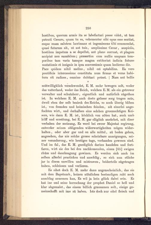 Es sihet doch E. M. mehr dann augenscheinlich, das siemit dem Bapstumb, keinen nützlichen bestendigen raht nochanschlag annemen kau, Es wil ja kein gluck dabei sein. Eshat ine und seine herrschung der prophet Daniel so hell undklar abgemalet, das einem billich grausamen solt, einige ge-meinschafft mit inie zu haben. Ists doch nur eitel fleisch und