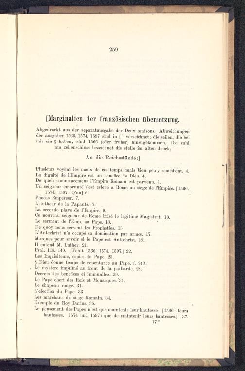Abgedruckt aus der Separatausgabe der Denx oraisons. Abweichungender ausgaben 15G6. 1574. 1597 sind in [] verzeichnet; diezeilen, die beimir ein § haben, sind 1566 (oder früher) hinzugekommen. Die zahlam zeilenschluss bezeichnet die stelle im alten druck.
