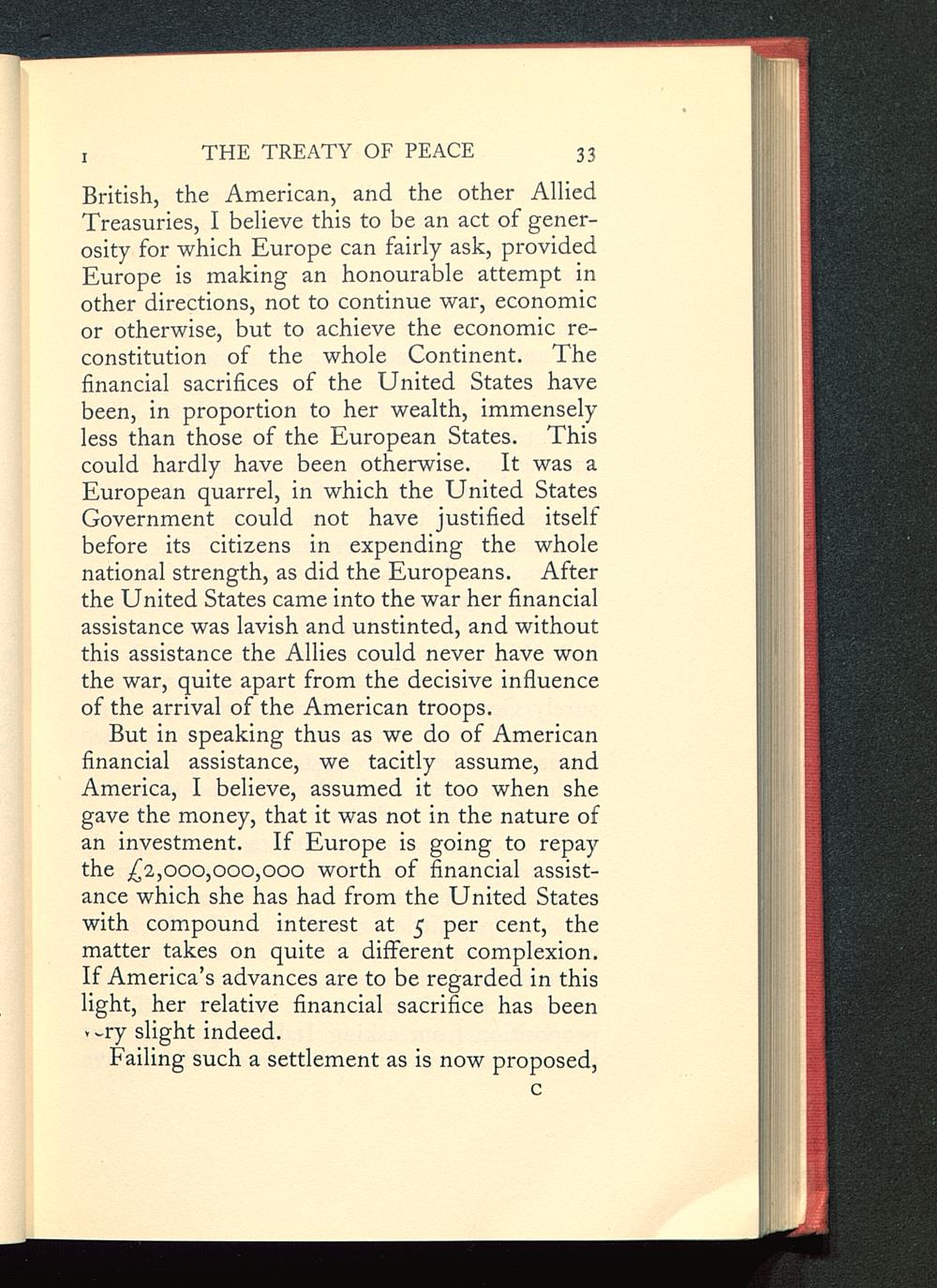 But in speaking thus as we do of American financial assistance, we tacitly assume, andAmerica , I believe, assumed it too when shegave the money, that it was not in the nature ofan investment. If Europe is going to repaythe ^2,000,000,000 worth of financial assist-ance which she has had from the United States with compound interest at 5 per cent, thematter takes on quite a different complexion.If America ’s advances are to be regarded in thislight, her relative financial sacrifice has been»-ry slight indeed.