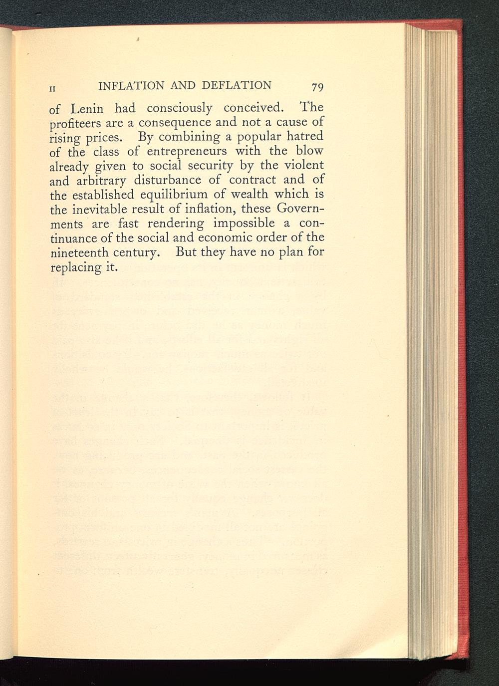 of Lenin had consciously conceived. Theprofiteers are a consequence and not a cause ofrising prices. By combining a popular hatredof the class of entrepreneurs with the blowalready given to social security by the violentand arbitrary disturbance of contract and ofthe established equilibrium of wealth which isthe inevitable result of inflation, these Govern-ments are fast rendering impossible a con-tinuance of the social and economic order of thenineteenth century. But they have no plan forreplacing it.