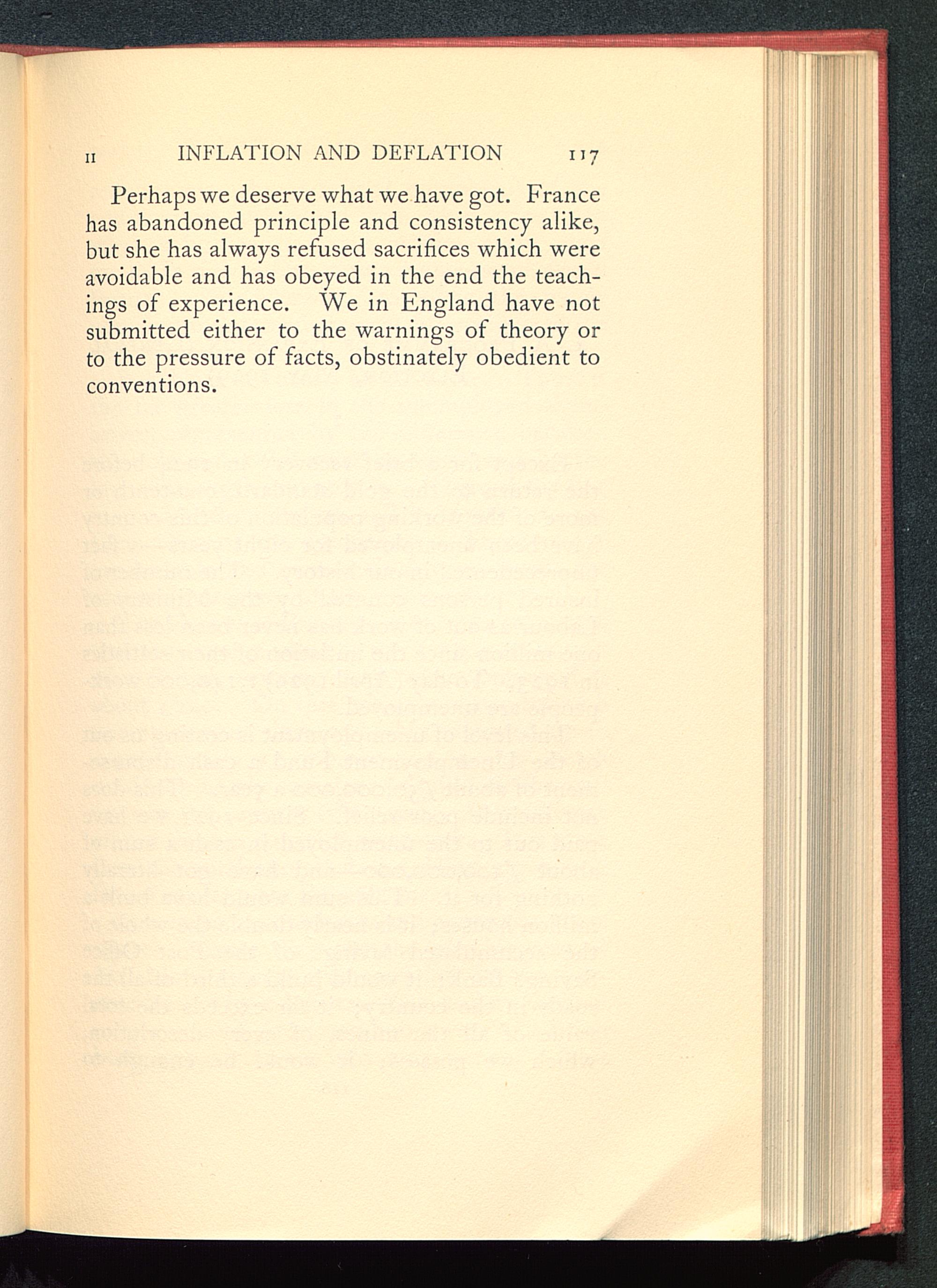 Perhaps we deserve what we have got. France has abandoned principle and consistency alike,but she has always refused sacrifices which wereavoidable and has obeyed in the end the teach-ings of experience. We in England have notsubmitted either to the warnings of theory orto the pressure of facts, obstinately obedient toconventions.