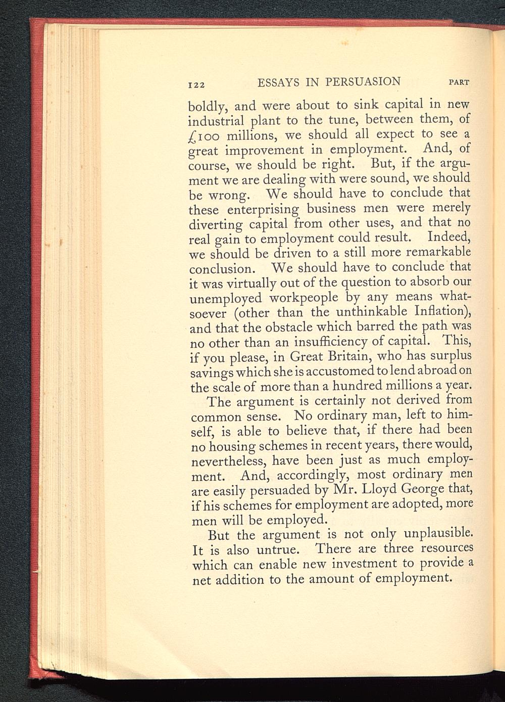 But the argument is not only unplausible.It is also untrue. There are three resourceswhich can enable new investment to provide anet addition to the amount of employment.