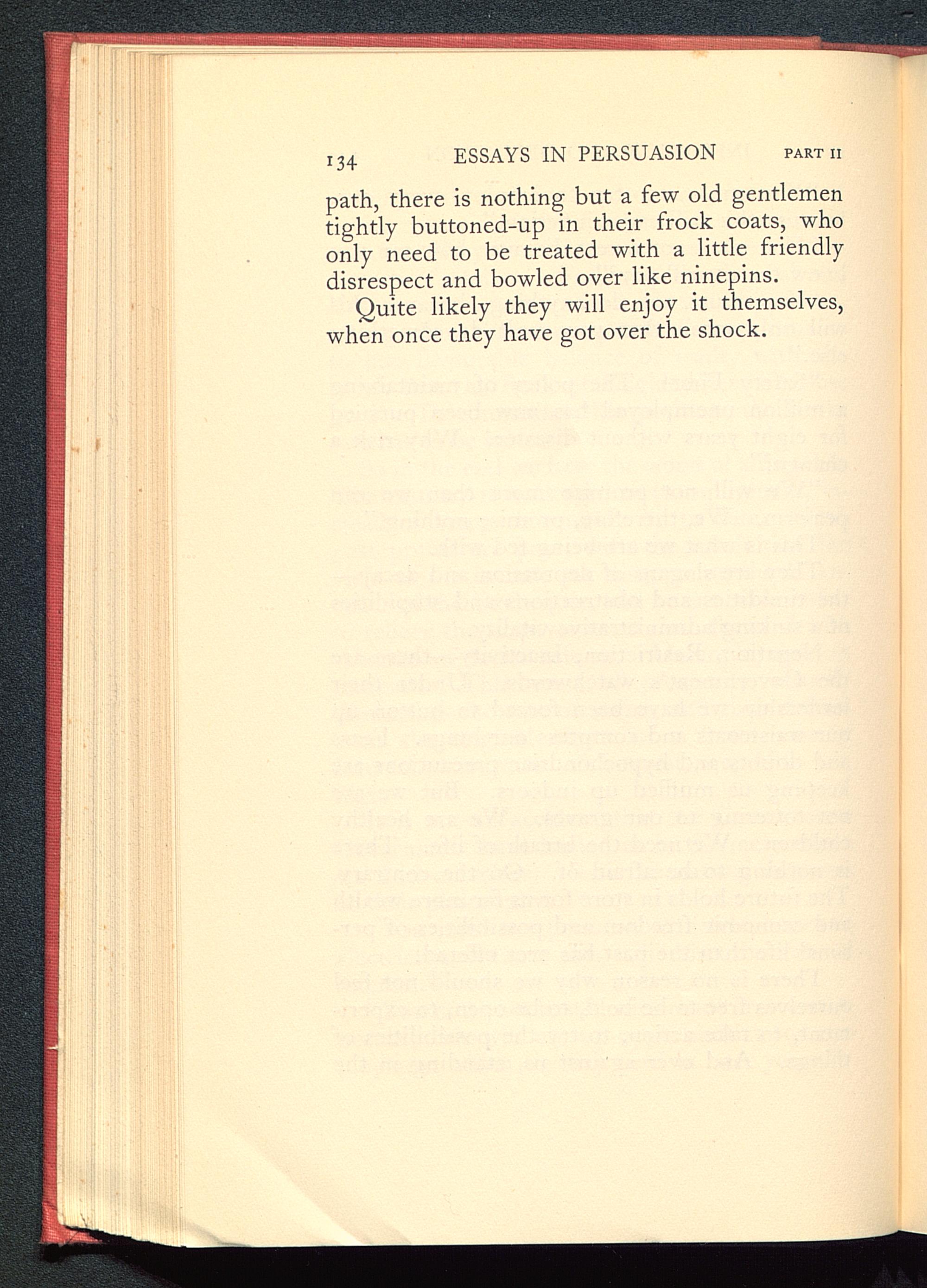 path, there is nothing but a few old gentlementightly buttoned-up in their frock coats, whoonly need to be treated with a little friendlydisrespect and bowled over like ninepins.