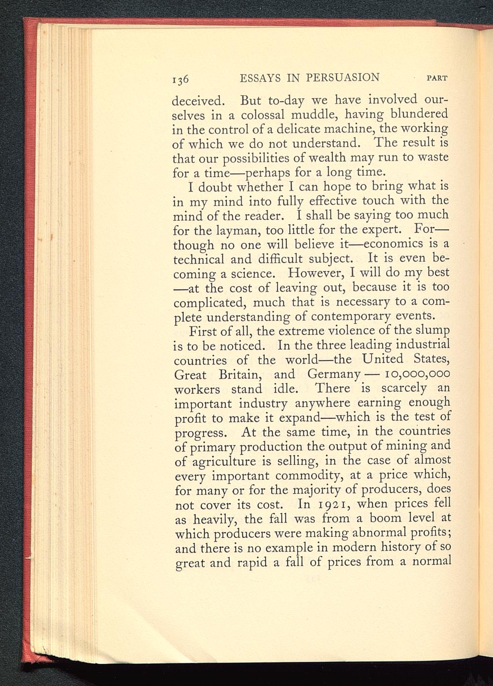 I doubt whether I can hope to bring what isin my mind into fully effective touch with themind of the reader. I shall be saying too muchfor the layman, too little for the expert. For—though no one will believe it—economics is atechnical and difficult subject. It is even be-coming a science. However, I will do my best—at the cost of leaving out, because it is toocomplicated, much that is necessary to a com-plete understanding of contemporary events.