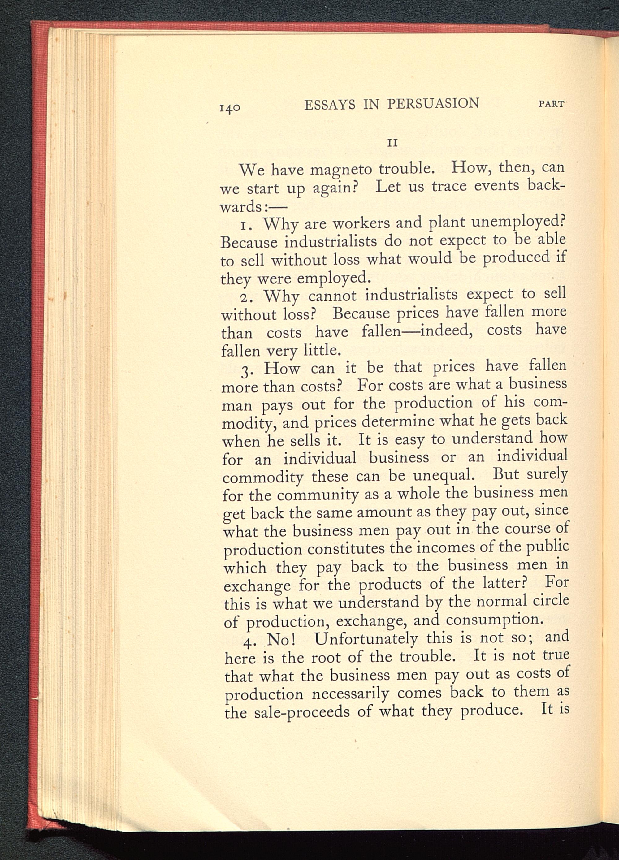 1. Why are workers and plant unemployed?Because industrialists do not expect to be ableto sell without loss what would be produced ifthey were employed.
