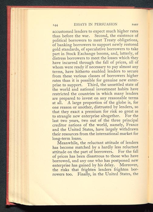 Meanwhile, the reluctant attitude of lendershas become matched by a hardly less reluctantattitude on the part of borrowers. For the fallof prices has been disastrous to those who haveborrowed, and any one who has postponed newenterprise has gained by his delay. Moreover,the risks that frighten lenders frighten bor-rowers too. Finally, in the United States , the