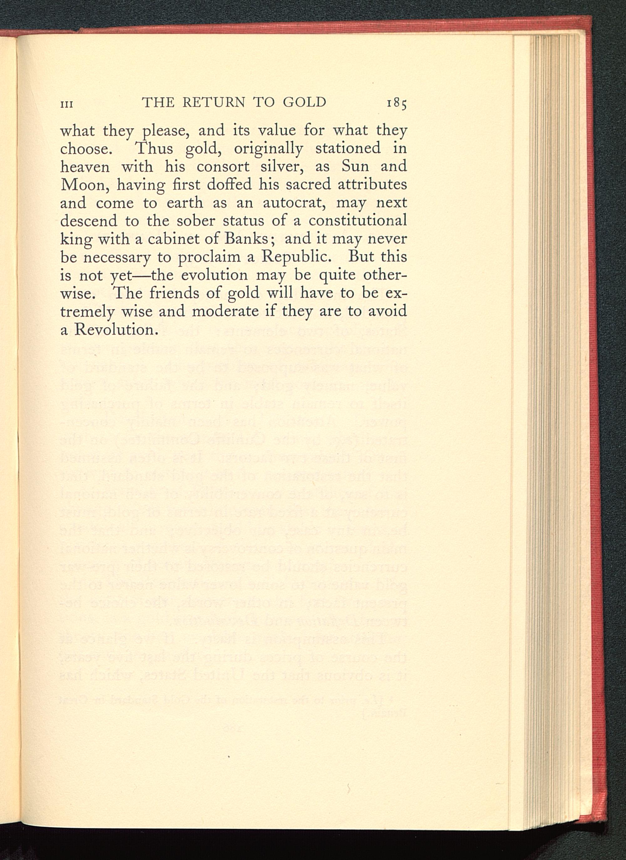 what they please, and its value for what theychoose. Thus gold, originally stationed inheaven with his consort silver, as Sun andMoon, having first doffed his sacred attributesand come to earth as an autocrat, may nextdescend to the sober status of a constitutionalking with a cabinet of Banks ; and it may neverbe necessary to proclaim a Republic. But thisis not yet—the evolution may be quite other-wise. The friends of gold will have to be ex-tremely wise and moderate if they are to avoida Revolution.