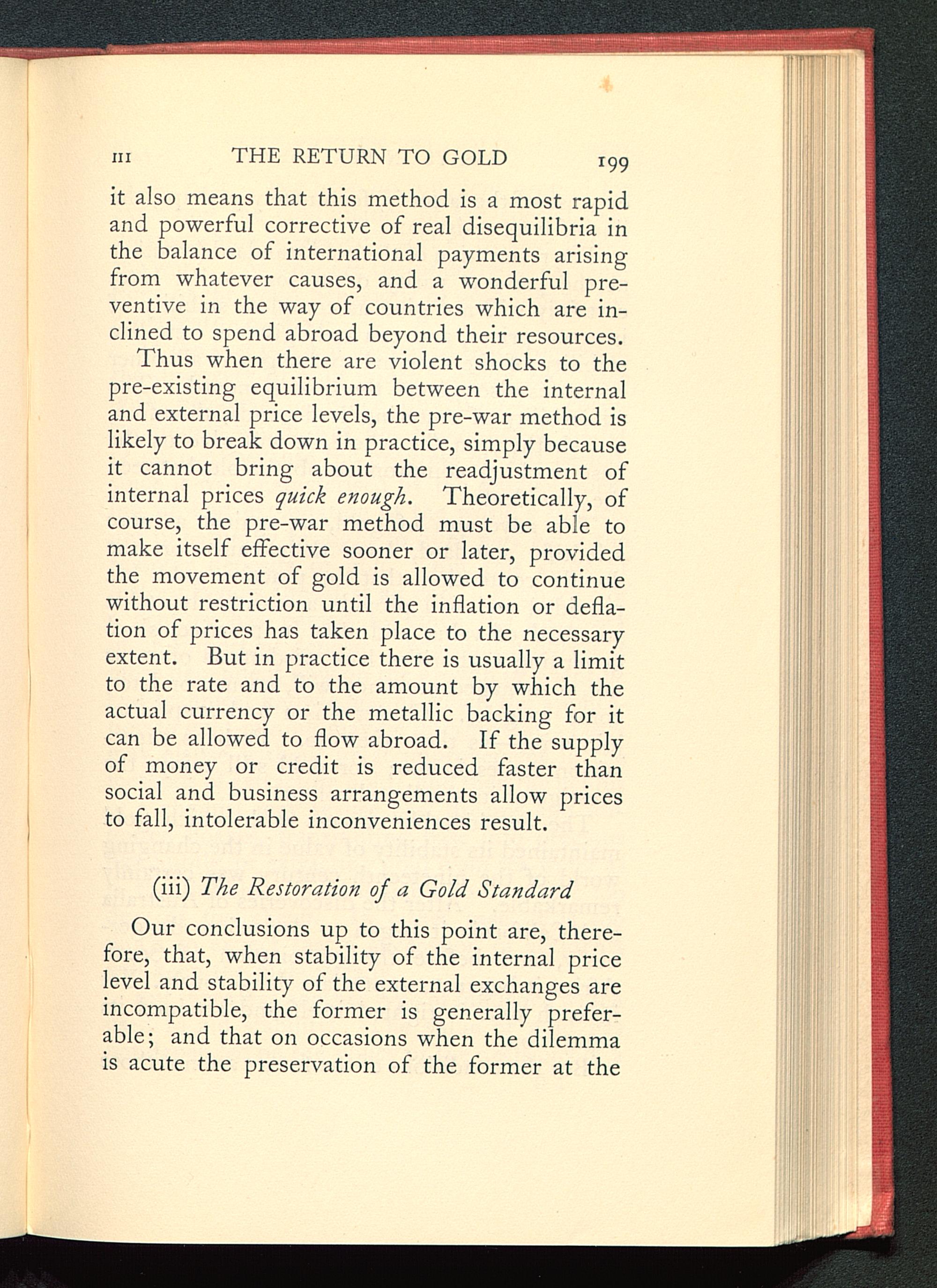 Our conclusions up to this point are, there-fore, that, when stability of the internal pricelevel and stability of the external exchanges areincompatible, the former is generally prefer-able; and that on occasions when the dilemmais acute the preservation of the former at the