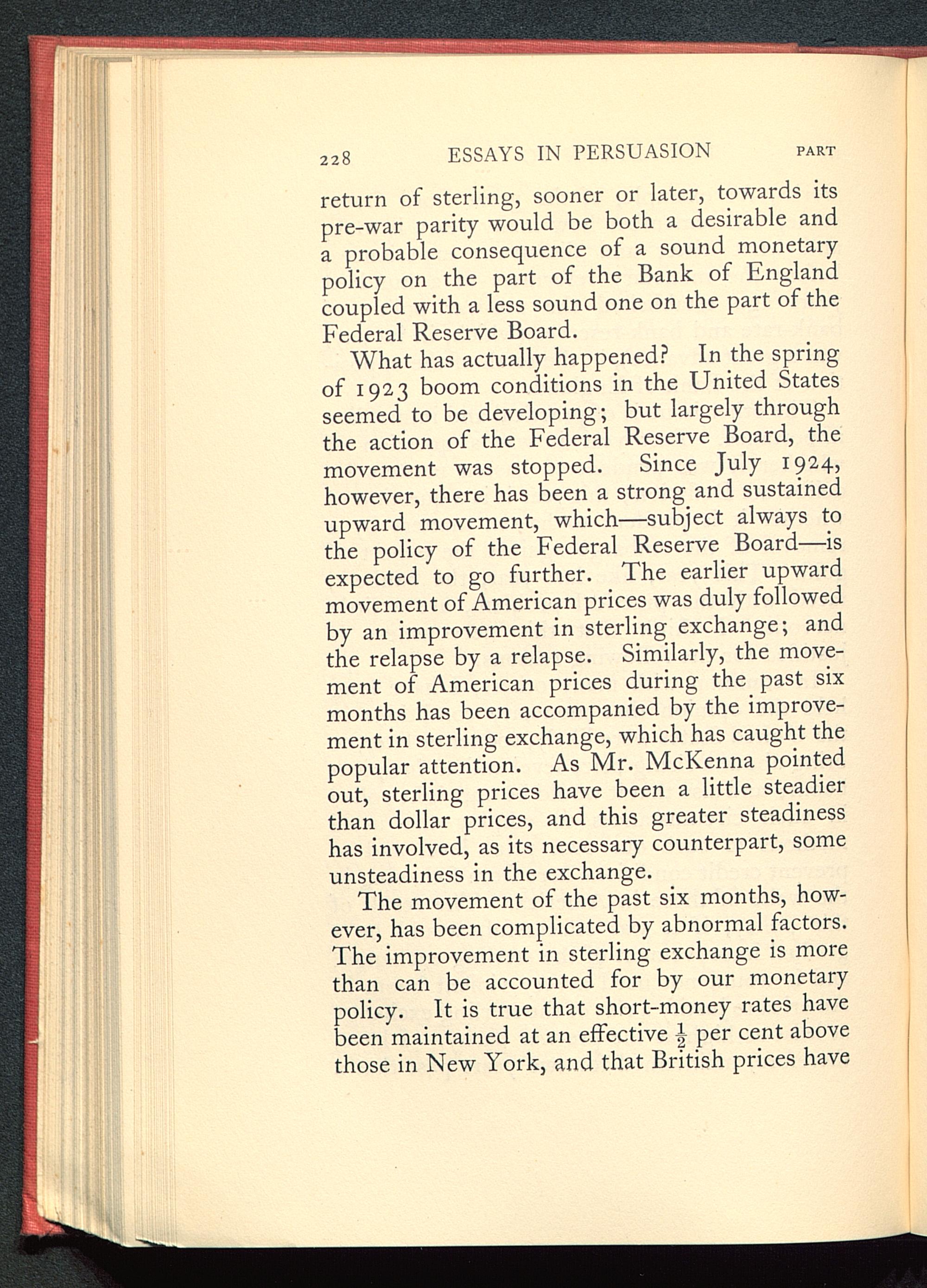 return of sterling, sooner or later, towards itspre-war parity would be both a desirable anda probable consequence of a sound monetarypolicy on the part of the Bank of England coupled with a less sound one on the part of theFederal Reserve Board .
