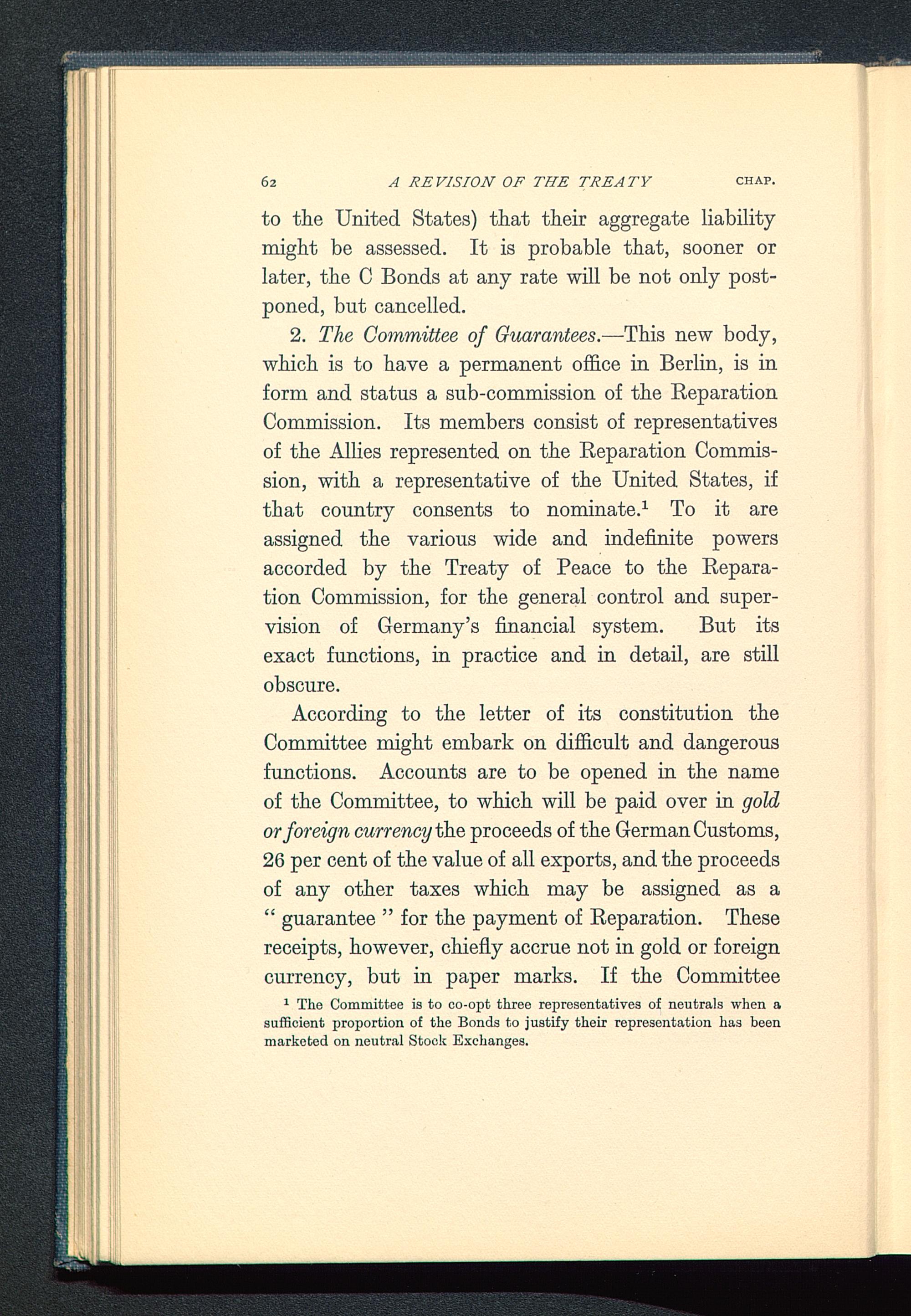 2. The Committee of Guarantees. —This new body,which is to have a permanent ofB.ce in Berlin, is inform and status a sub-commission of the SeparationCommission. Its members consist of representativesof the Allies represented on the Reparation Commis-sion, with a representative of the United States , ifthat country consents to nominate. 1 To it areassigned the various wide and indefinite powersaccorded by the Treaty of Peace to the Repara-tion Commission, for the general control and super-vision of Germany' s financial system. But itsexact functions, in practice and in detail, are stillobscure.