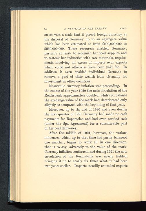 Moreover, up to the end of 1920 and even duringthe first quarter of 1921 Germany had made no cashpayments for Eeparation and had even received cash(under the Spa Agreement) for a considerable partof her coal deliveries.