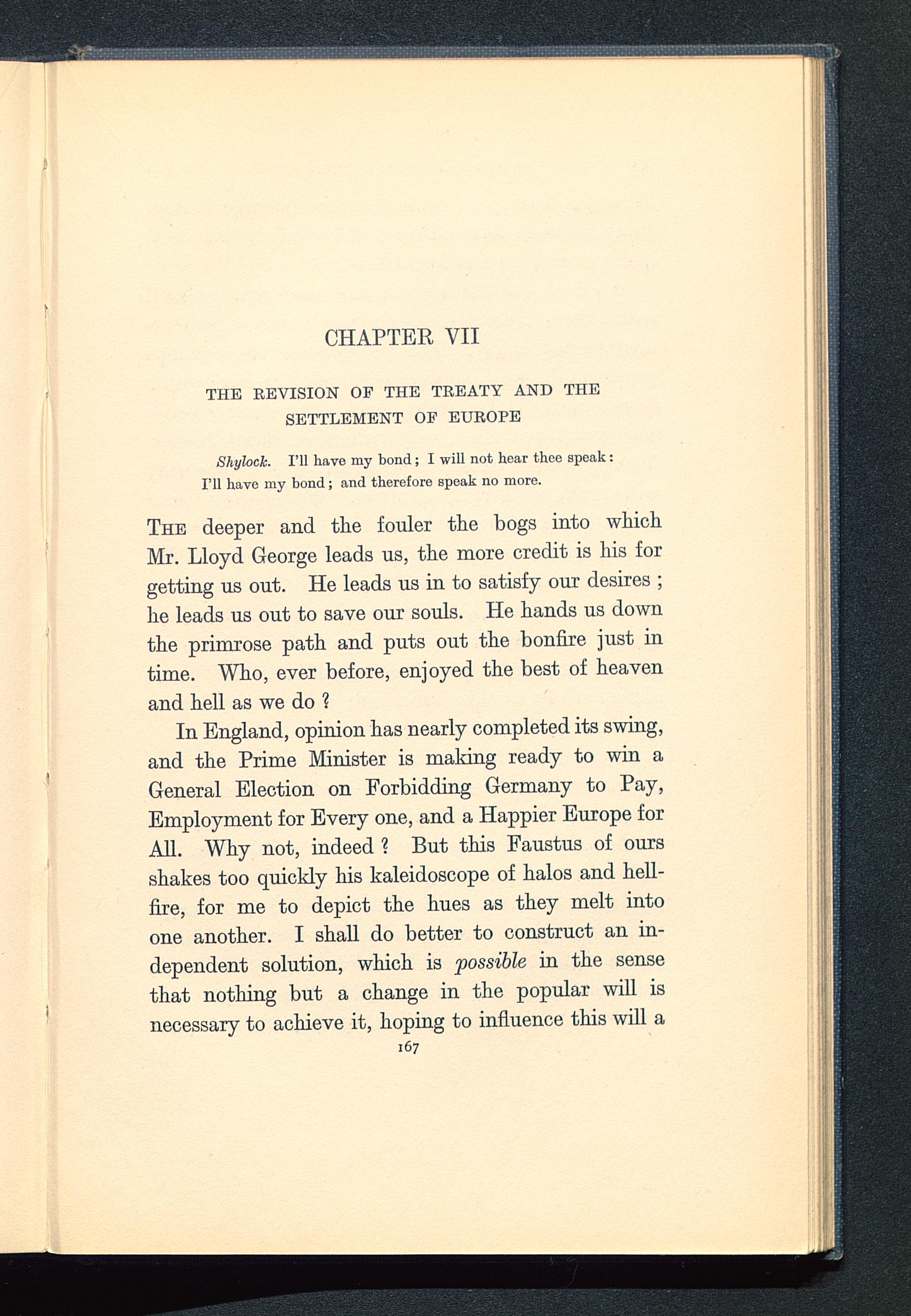 In England, opinion has nearly completed its swing,and the Prime Minister is making ready to win aGeneral Election on Forbidding Germany to Pay,Employment for Every one, and a Happier Europe forAll. Why not, indeed ? But this Faustus of oursshakes too quickly his kaleidoscope of halos and hell-fire, for me to depict the hues as they melt intoone another. I shall do better to construct an in-dependent solution, which is possible in the sensethat nothing but a change in the popular will is