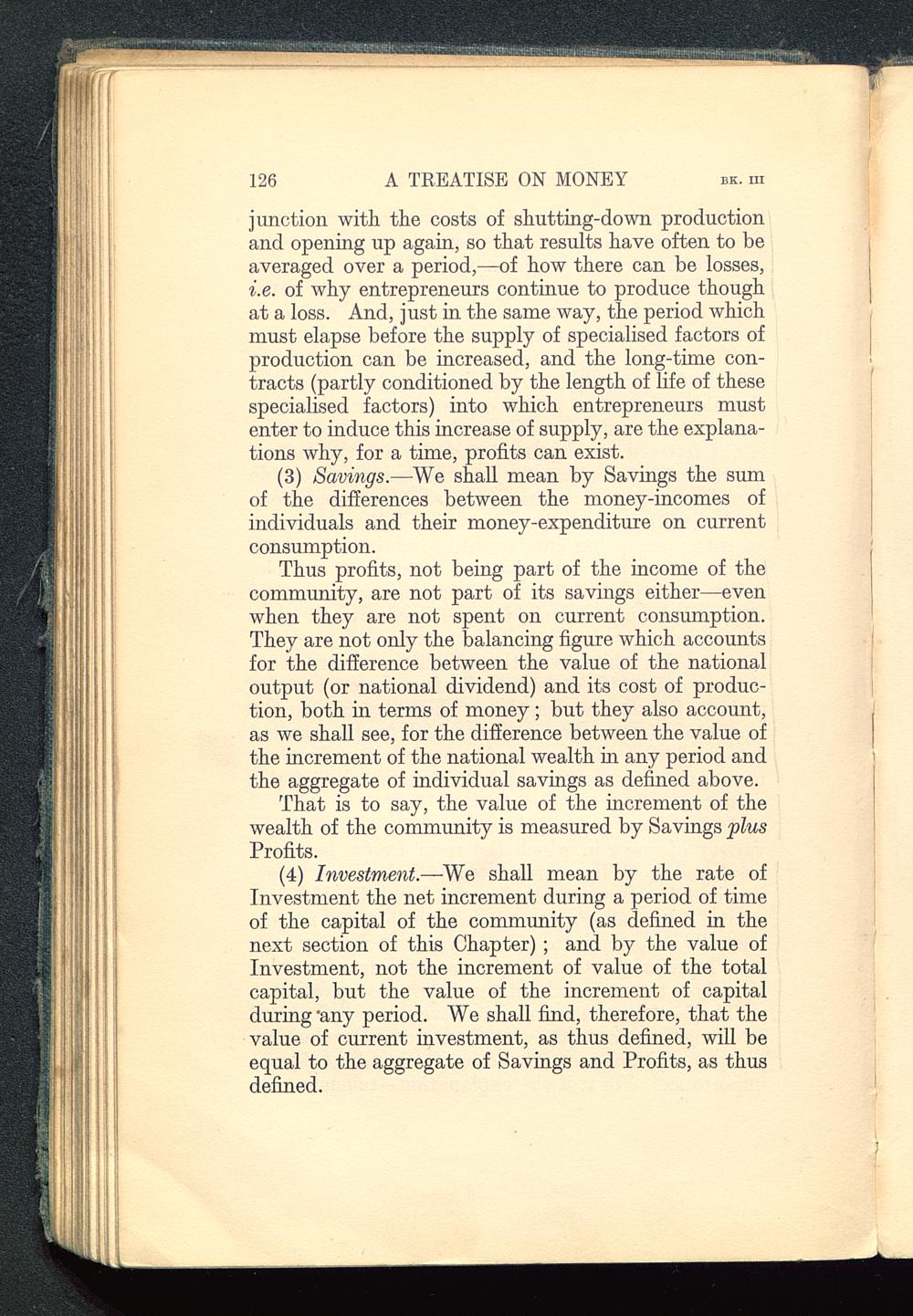 (4) Investment. —We shall mean by the rate ofInvestment the net increment during a period of timeof the capital of the community (as defined in thenext section of this Chapter) ; and by the value ofInvestment, not the increment of value of the totalcapital, but the value of the increment of capitalduring'any period. We shall find, therefore, that thevalue of current investment, as thus defined, will beequal to the aggregate of Savings and Profits, as thusdefined.