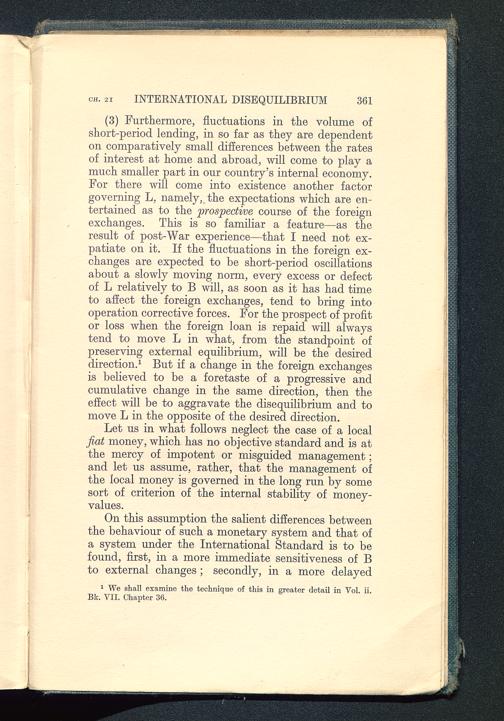 Let us in what follows neglect the case of a localfiat money, which has no objective standard and is atthe mercy of impotent or misguided management;and let us assume, rather, that the management ofthe local money is governed in the long run by somesort of criterion of the internal stability of money-values.