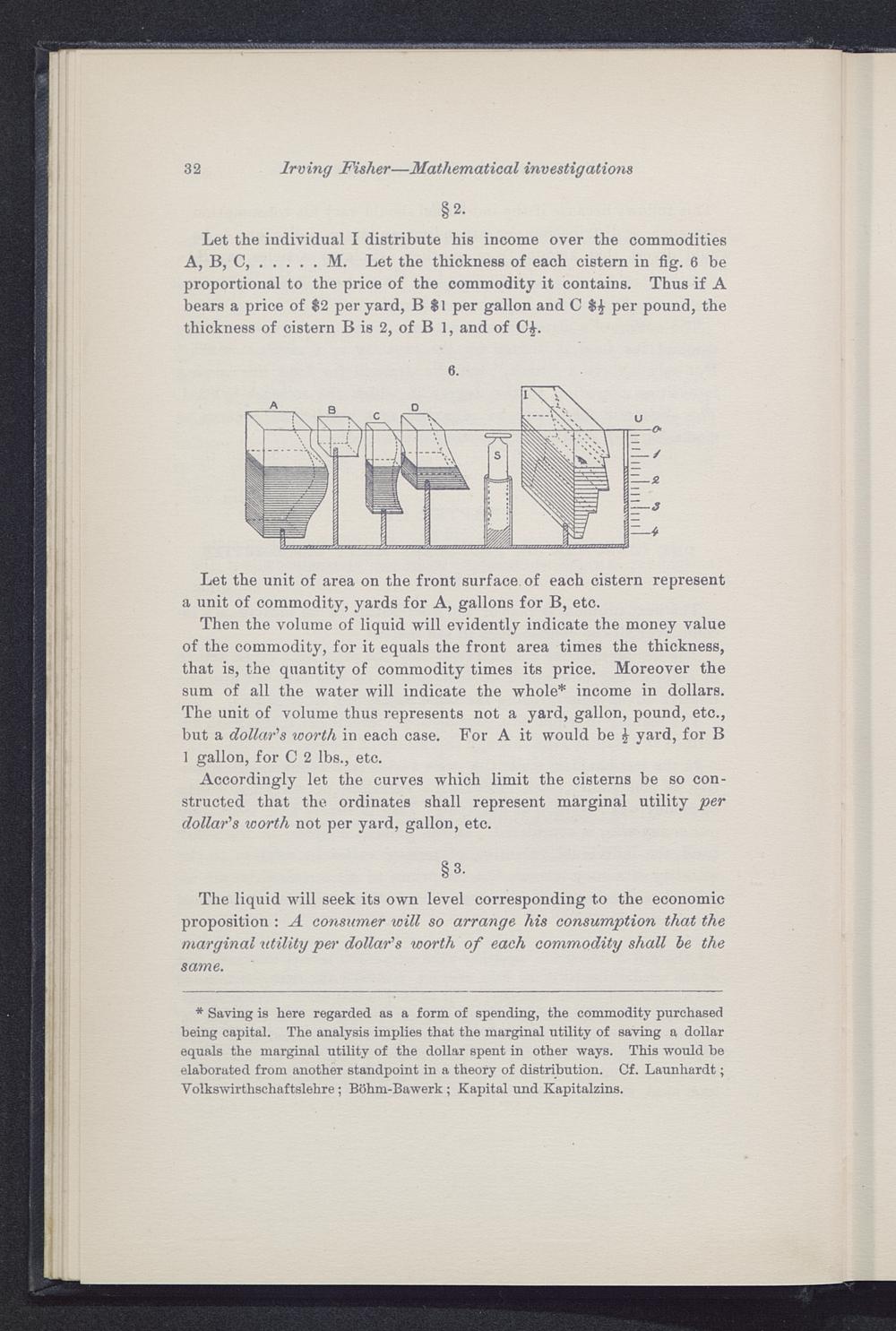 * Saving is here regarded as a form of spending, the commodity purchasedbeing capital. The analysis implies that the marginal utility of saving a dollarequals the marginal utility of the dollar spent in other ways. This would heelaborated from another standpoint in a theory of distribution. Cf. Launhardt;Volkswirthschaftslehre; Bohm-Bawerk ; Kapital und Kapitalzins.