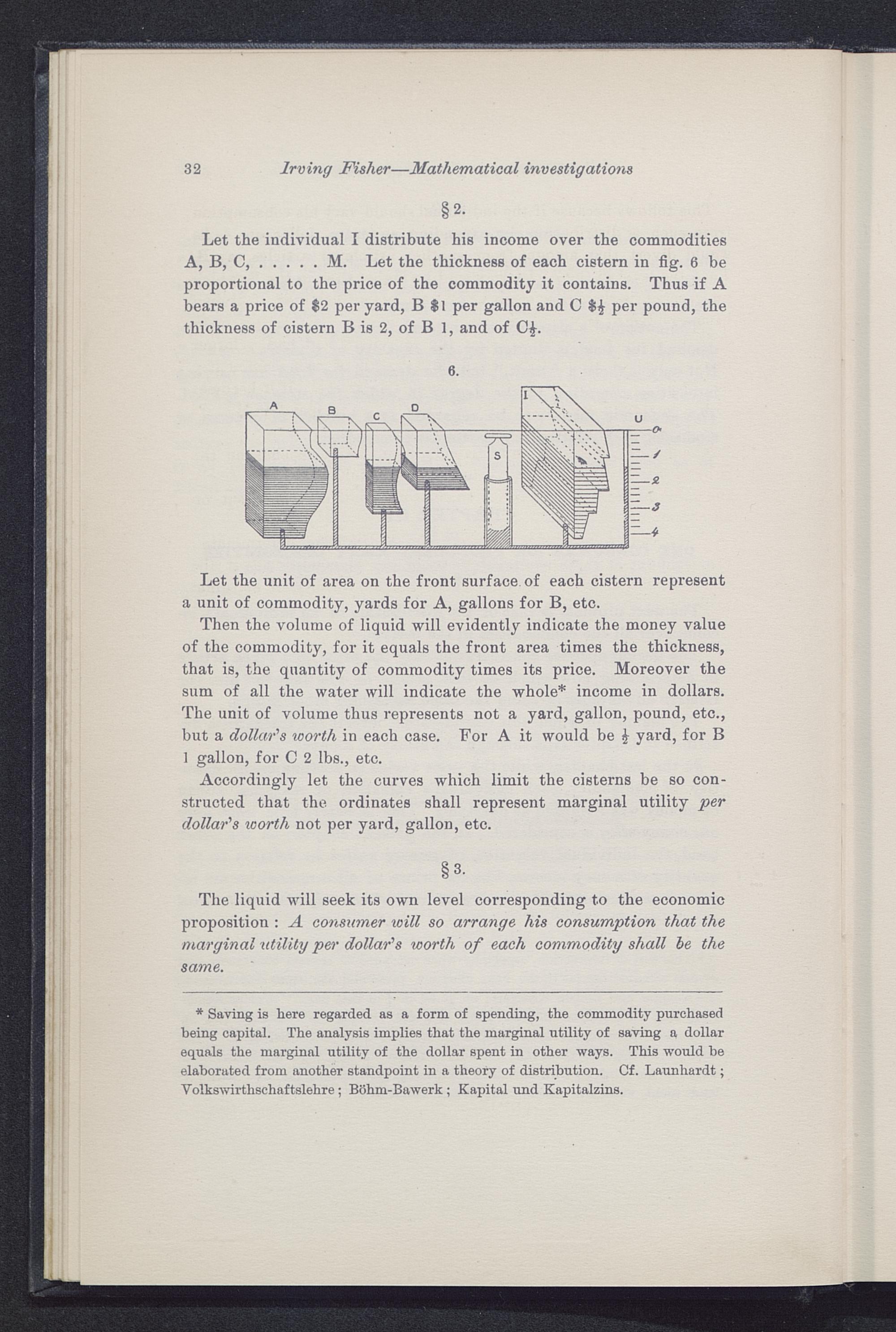 Accordingly let the curves which limit the cisterns be so con-structed that the ordinates shall represent marginal utility perdollar's worth not per yard, gallon, etc.