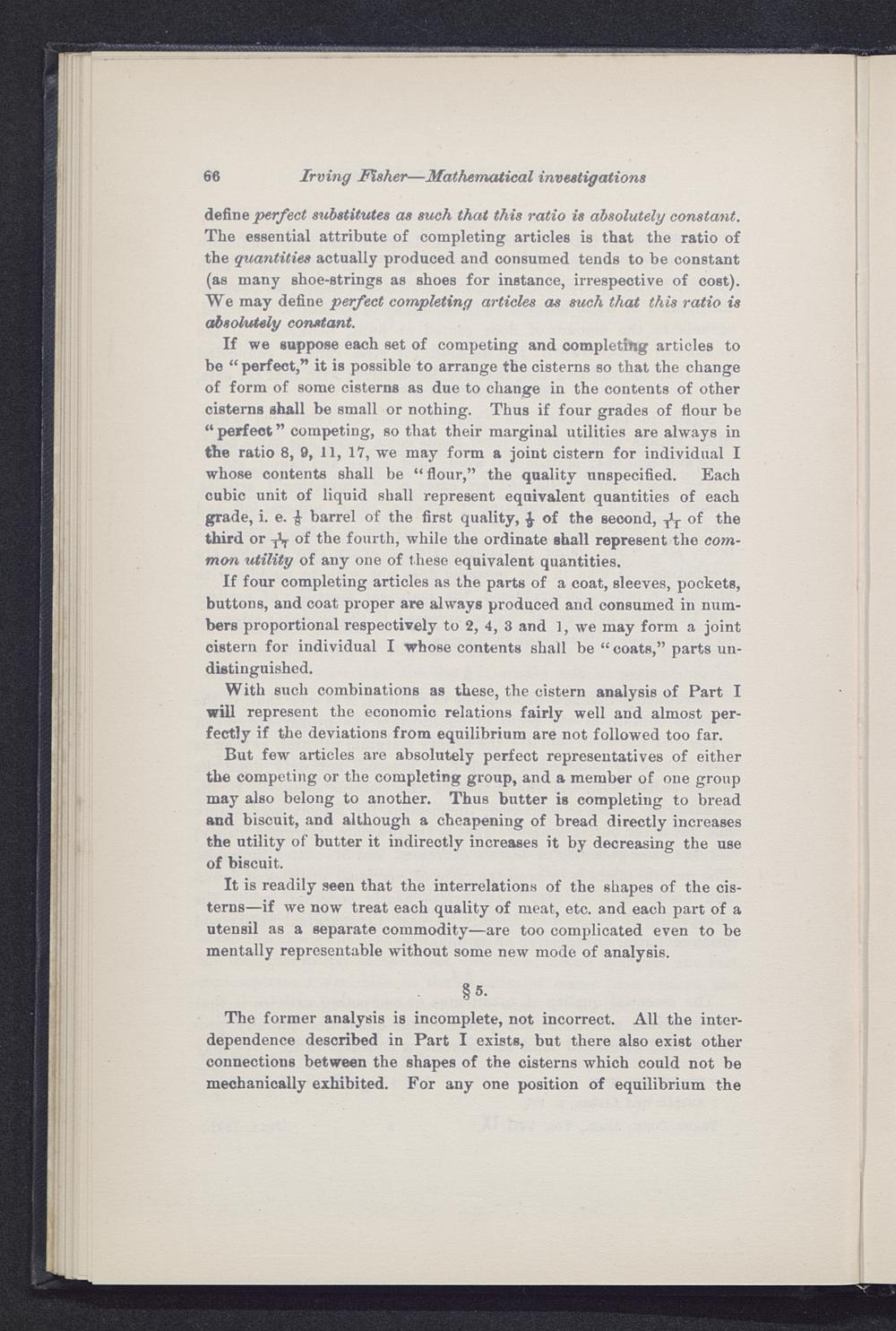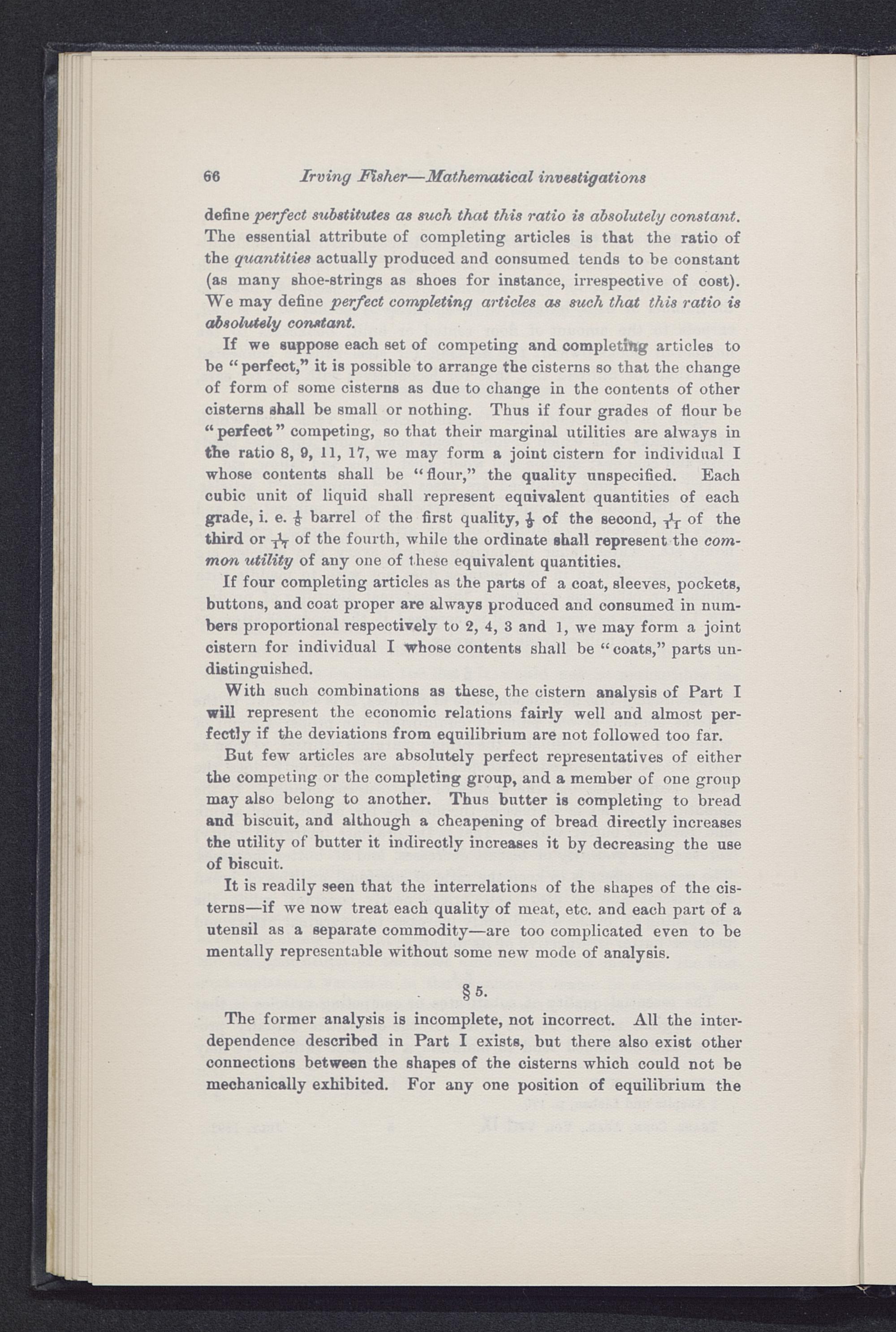 If four completing articles as the parts of a coat, sleeves, pockets,buttons, and coat proper are always produced and consumed in num-bers proportional respectively to 2, 4, 3 and 1, we may form a jointcistern for individual I whose contents shall be “ coats,” parts un-distinguished.