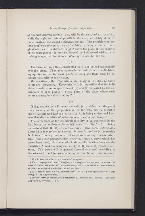 Mathematically the total utility and marginal utilities at thesepoints are imaginary. Economically it is impossible that the indi-vidual should consume quantities of (a) and (b) indicated by the co-ordinates of such points.f Those parts of the plane where suchpoints are may be called “ empty.”