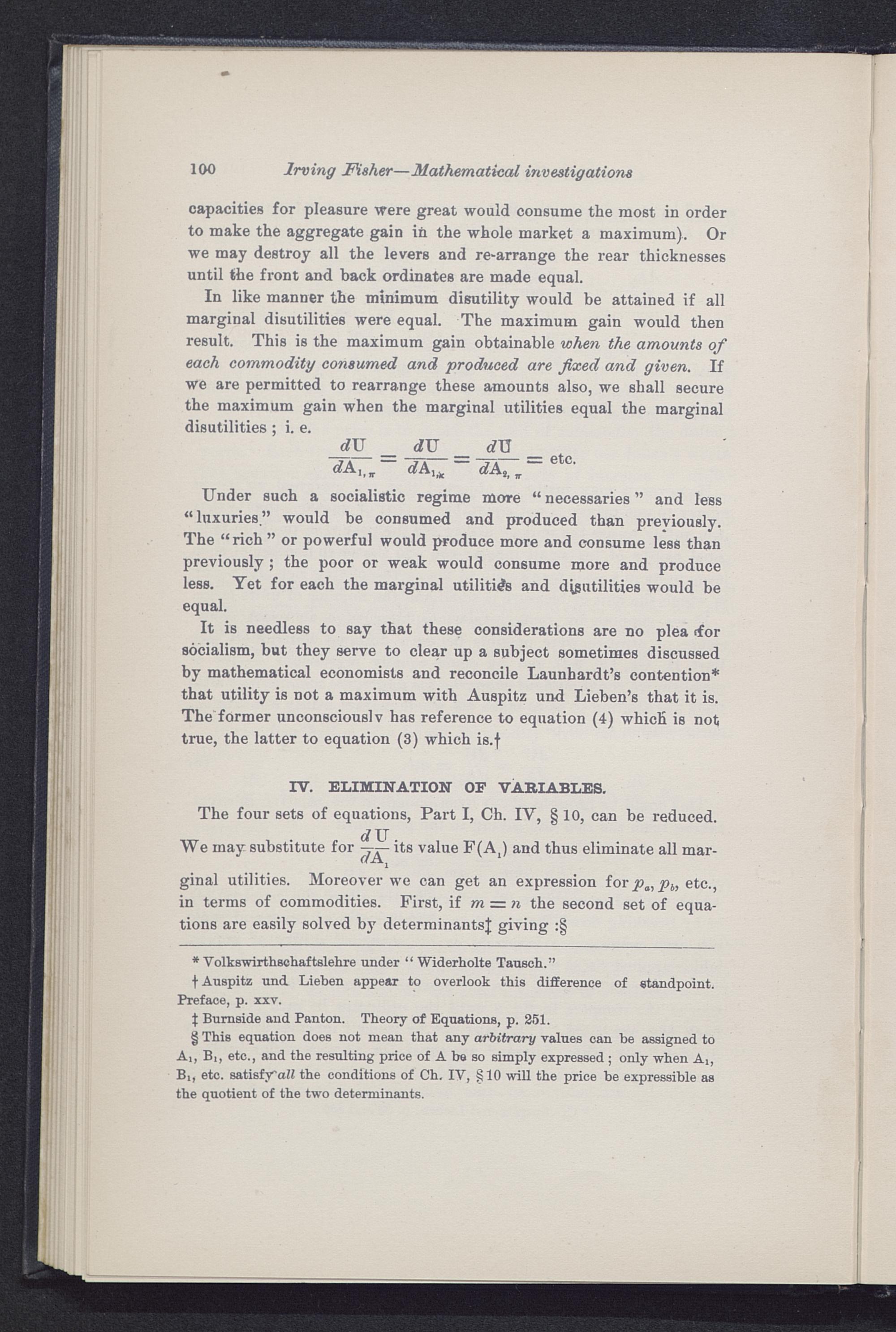 100 Irving Fisher —Mathematical investigations