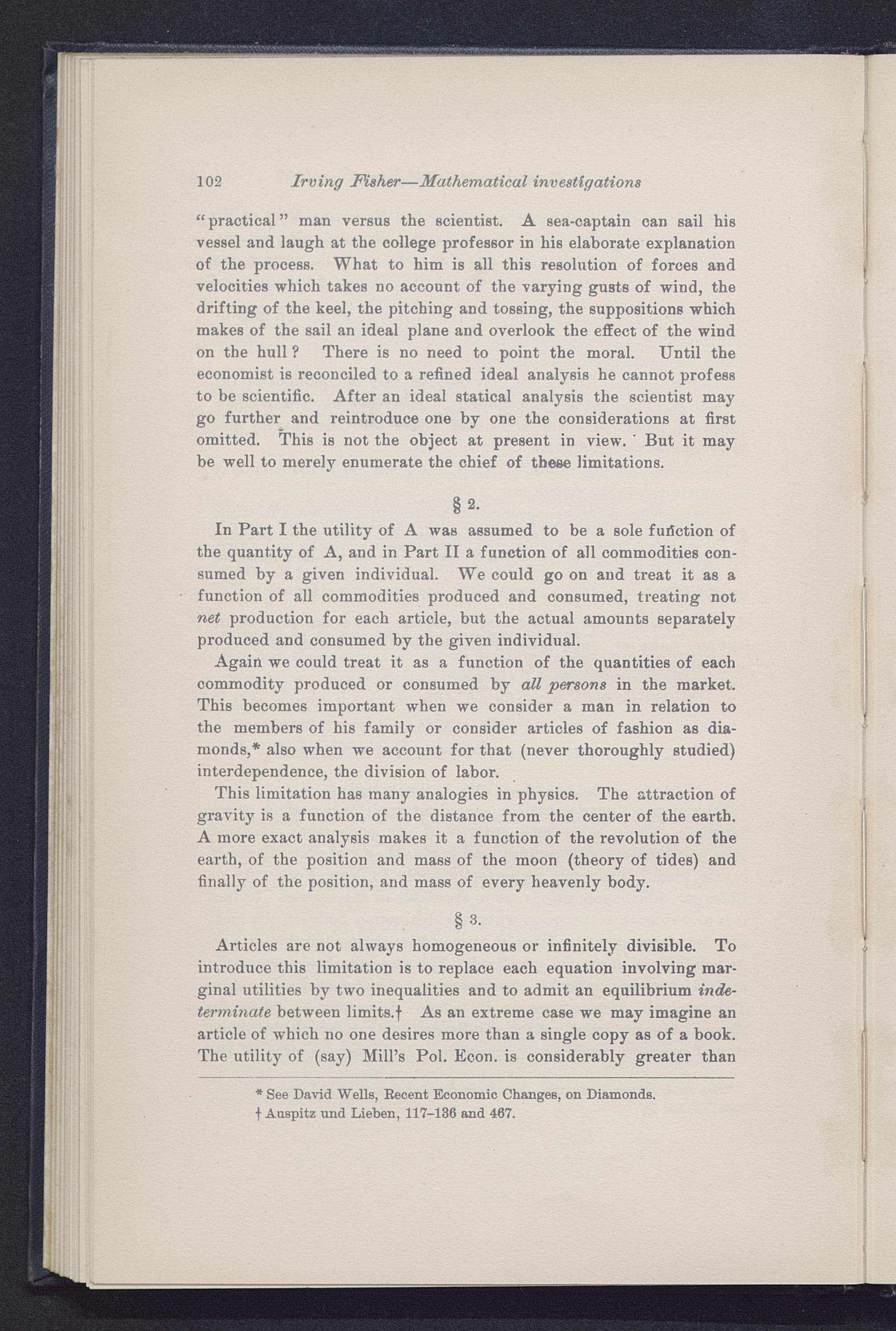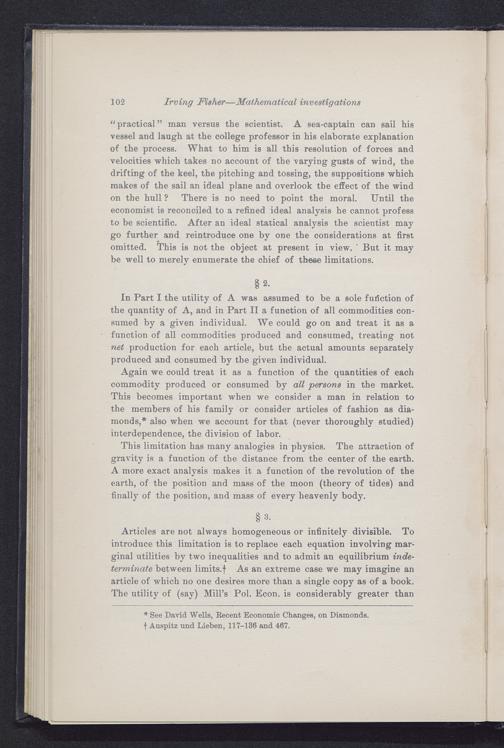 102 Irving Fisher —Mathematical investigations