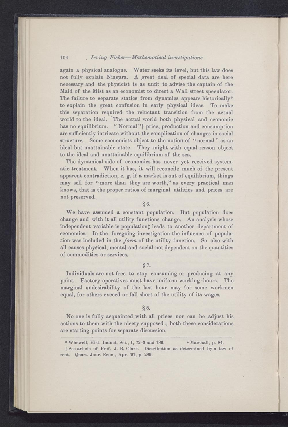 The dynamical side of economics has never yet received system-atic treatment. When it has, it will reconcile much of the presentapparent contradiction, e. g. if a market is out of equilibrium, thingsmay sell for “ more than they are worth,” as every practical manknows, that is the proper ratios of marginal utilities and prices arenot preserved.