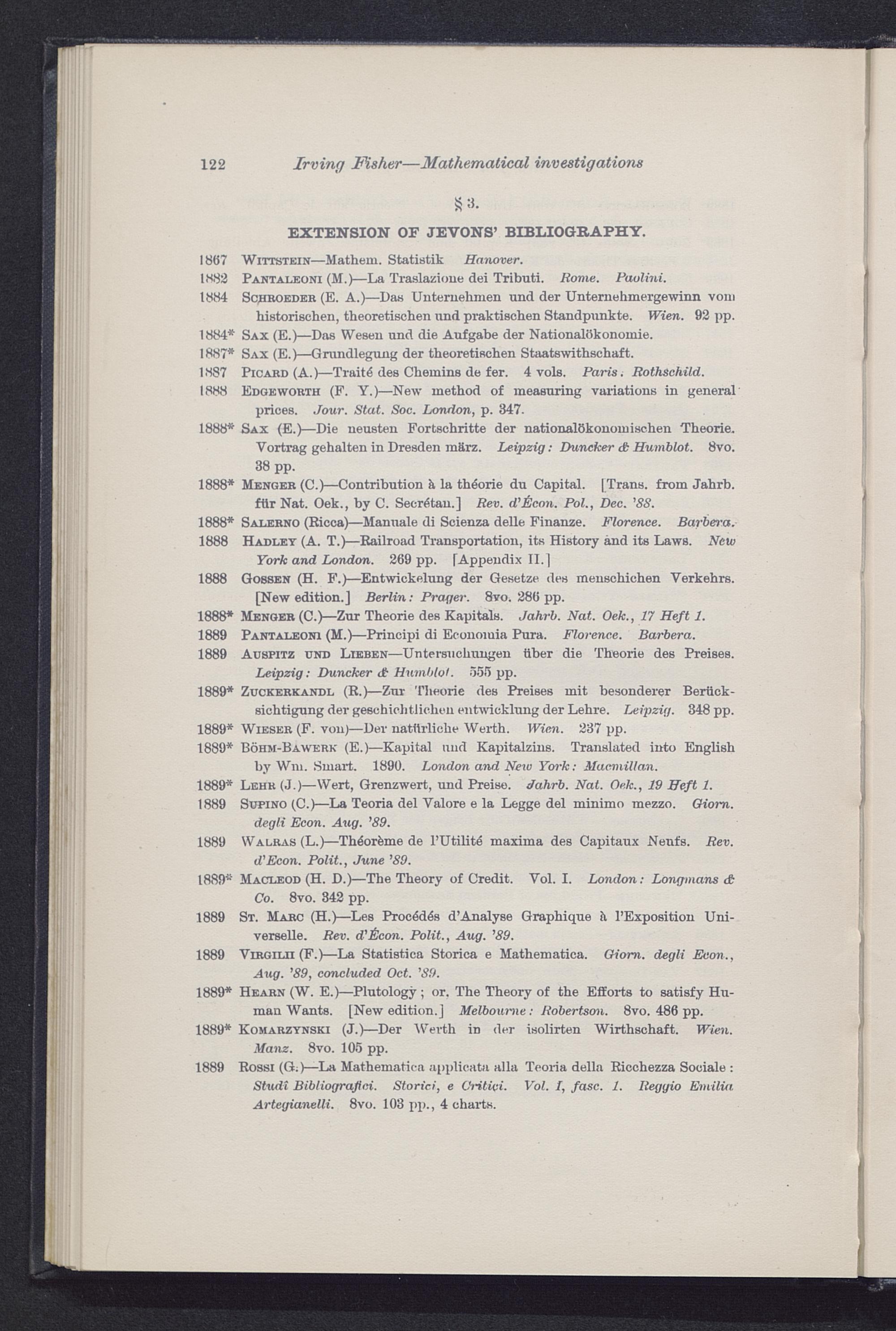 1889* Lehr (J.)—Wert, Grenzwert, und Preise. Jahrb. Nat. Oek., IS Heft 1.1889 Supino (C.)—La Teoria del Yalore e la Legge del minimo mezzo. Giom.degli Econ. Aug. ’89.