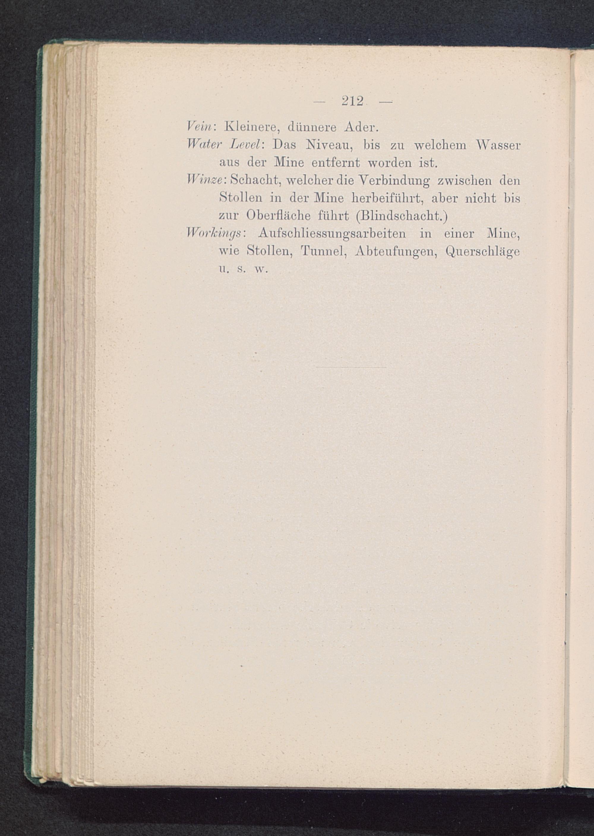 Minze: Schacht, welcher die Verbindung zwischen denStollen in der Mine herbeiführt, aber nicht biszur Oberfläche führt (Blindschacht.)