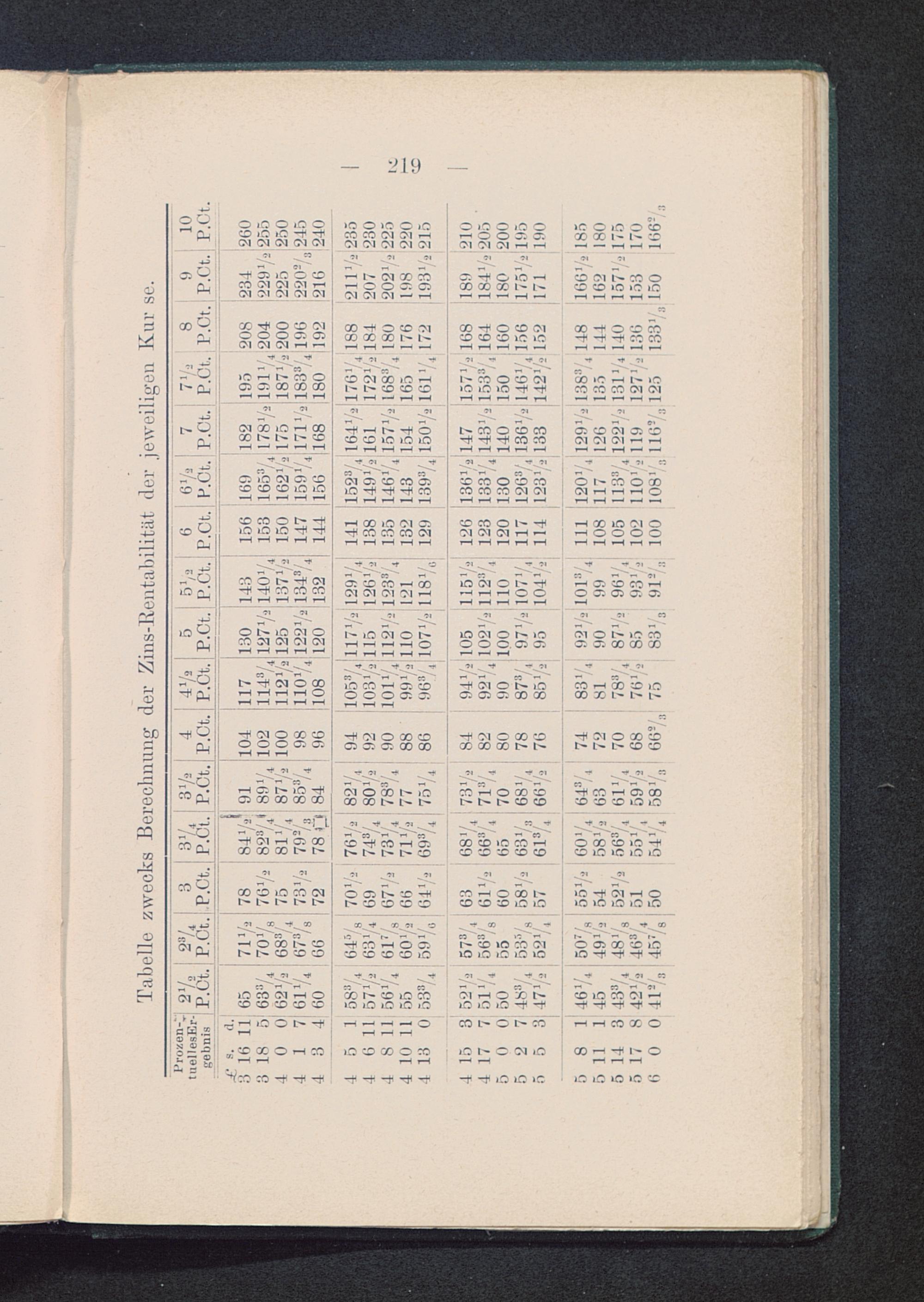 Tabelle zwecks Berechnung der Zins-Bentabilität der jeweiligen Kur se.
