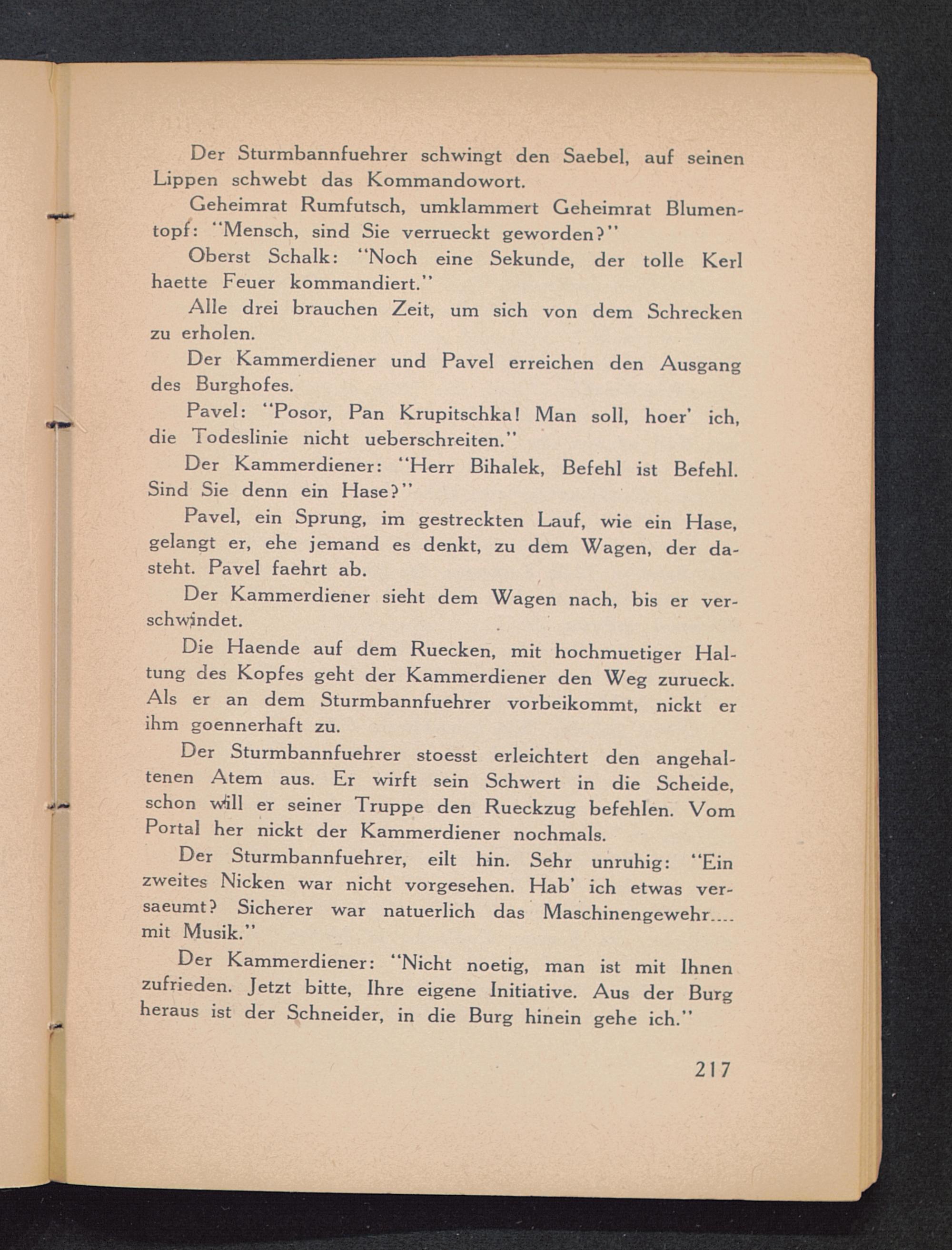 Pavel: “Posor, Pan Krupitschka! Man soll, hoer’ ich,die Todeslinie nicht ueberschreiten.”