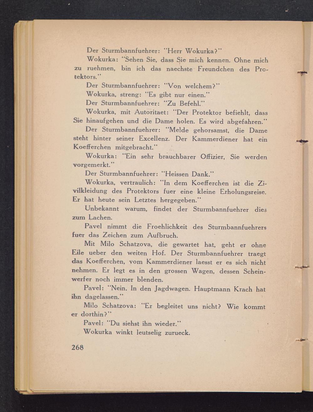 Wokurka, vertraulich: “In dem Koefferchen ist die Zi-vilkleidung des Protektors fuer eine kleine Erholungsreise.Er hat heute sein Letztes hergegeben.”