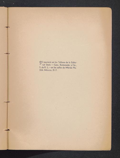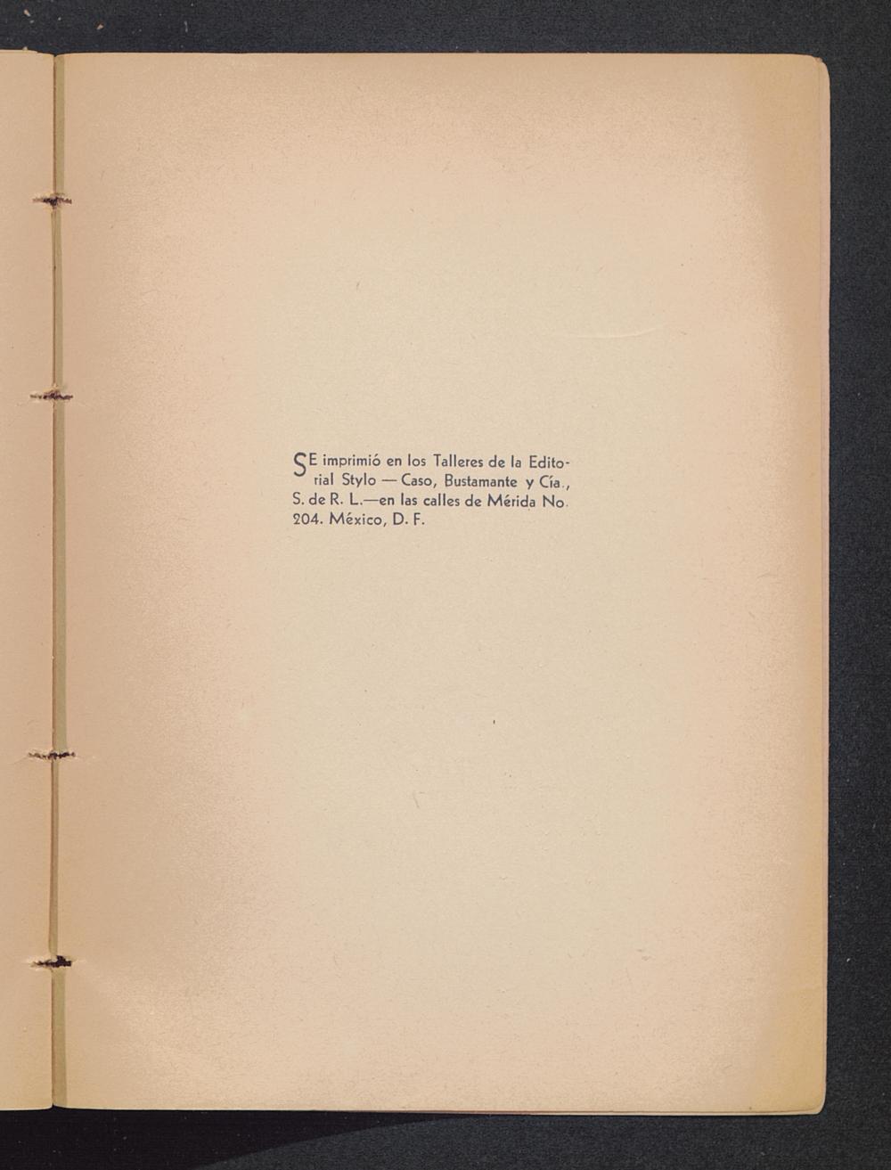 imprimiö en los Talleres de la Edito-rial Stylo—Caso, Bustamante y Cia.,S. de R. L.—en las calles de Merida No204. Mexico , D. F.