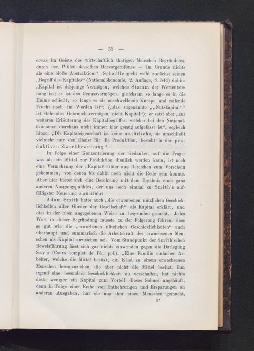 In Folge einer Konzentrierung der Gedanken auf die Frage:was als ein Mittel zur Produktion dienlich werden kann, ist nocheine Vermehrung der „Kapital“-Güter aus Bereichen zum Vorscheingekommen, von denen bis dahin noch nicht die Rede sein konnte.Aber hier bietet sich eine Berührung mit dem Ergebnis eines ganzanderen Ausgangspunktes, der uns noch einmal zu Smith’s auf-fälligster Neuerung zurückführt