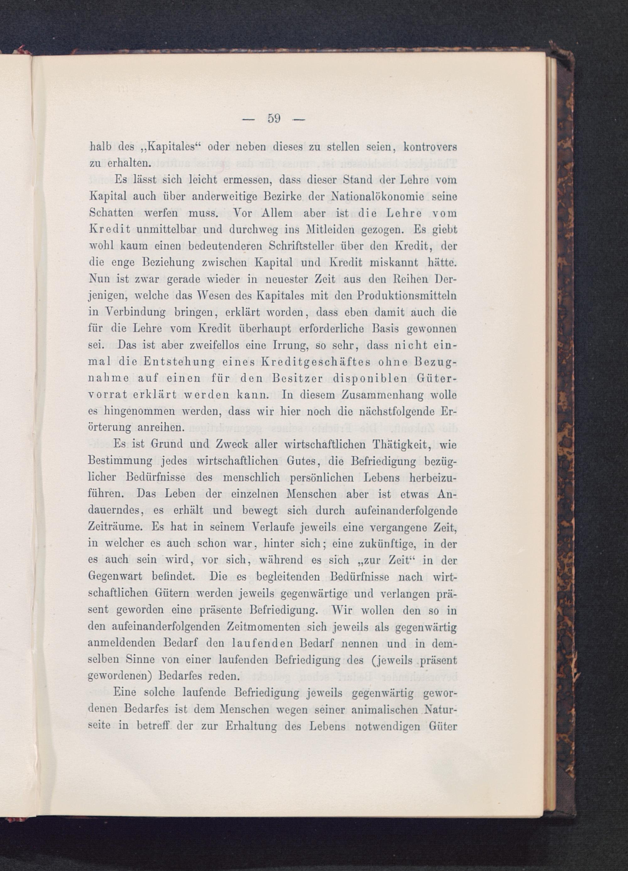 Es ist Grund und Zweck aller wirtschaftlichen Thätigkeit, wieBestimmung jedes wirtschaftlichen Gutes, die Befriedigung bezüg-licher Bedürfnisse des menschlich persönlichen Lebens herbeizu-führen. Das Leben der einzelnen Menschen aber ist etwas An-dauerndes, es erhält und bewegt sich durch aufeinanderfolgendeZeiträume. Es hat in seinem Verlaufe jeweils eine vergangene Zeit,in welcher es auch schon war, hinter sich; eine zukünftige, in deres auch sein wird, vor sich, während es sich „zur Zeit“ in derGegenwart befindet. Die es begleitenden Bedürfnisse nach wirt-schaftlichen Gütern werden jeweils gegenwärtige und verlangen prä-sent geworden eine präsente Befriedigung. Wir wollen den so inden aufeinanderfolgenden Zeitmomenten sich jeweils als gegenwärtiganmeldenden Bedarf den laufenden Bedarf nennen und in dem-selben Sinne von einer laufenden Befriedigung des (jeweils präsentgewordenen) Bedarfes reden.