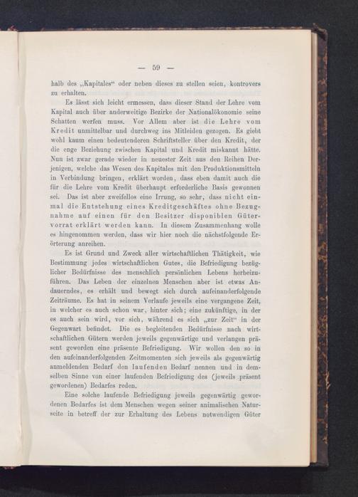 Es lässt sich leicht ermessen, dass dieser Stand der Lehre vomKapital auch über anderweitige Bezirke der Nationalökonomie seineSchatten werfen muss. Vor Allem aber ist die Lehre vomKredit unmittelbar und durchweg ins Mitleiden gezogen. Es giebtwohl kaum einen bedeutenderen Schriftsteller über den Kredit, derdie enge Beziehung zwischen Kapital und Kredit miskannt hätte.Nun ist zwar gerade wieder in neuester Zeit aus den Reihen Der-jenigen, welche das Wesen des Kapitales mit den Produktionsmittelnin Verbindung bringen, erklärt worden, dass eben damit auch diefür die Lehre vom Kredit überhaupt erforderliche Basis gewonnensei. Das ist aber zweifellos eine Irrung, so sehr, dass nicht ein-mal die Entstehung eines Kreditgeschäftes ohne Bezug-nahme auf einen für den Besitzer disponiblen Güter-vorrat erklärt werden kann. In diesem Zusammenhang wollees hingenommen werden, dass wir hier noch die nächstfolgende Er-örterung anreihen.