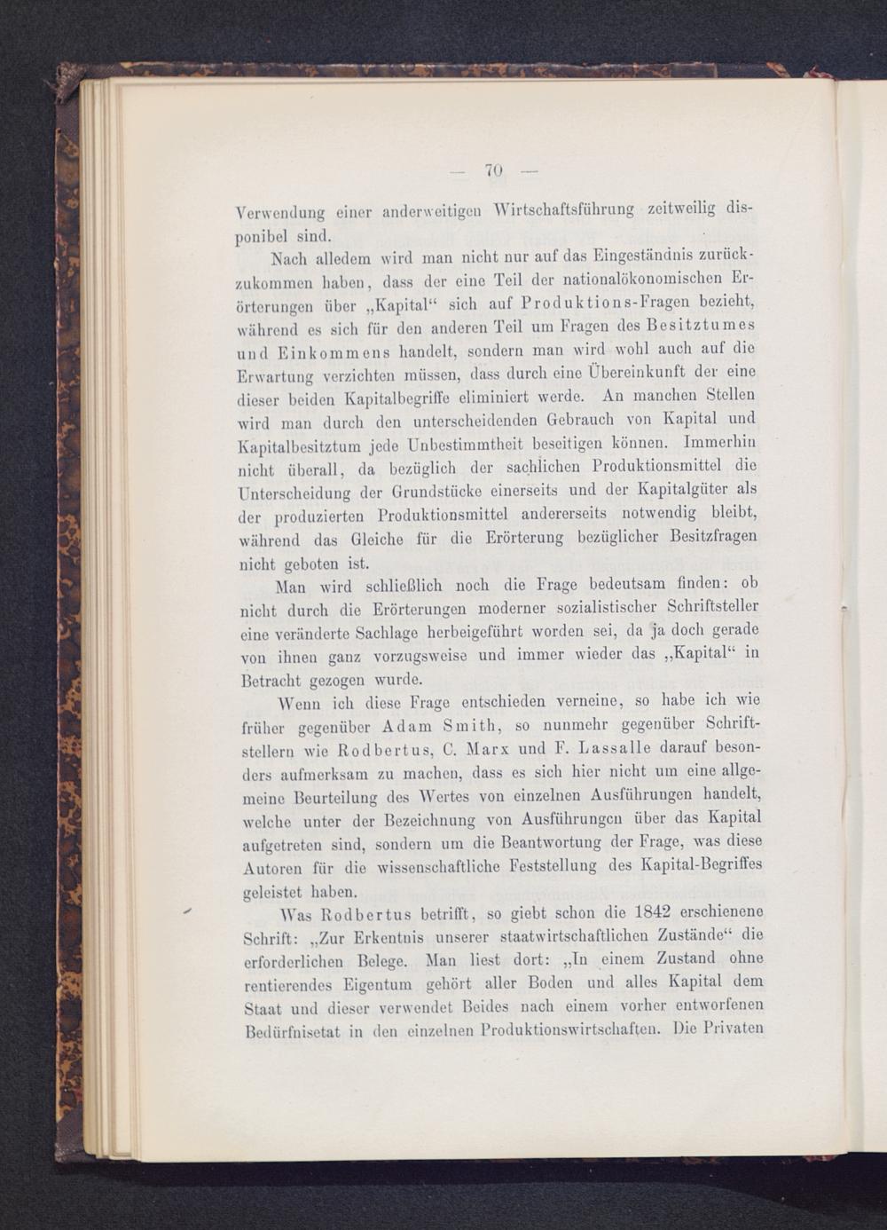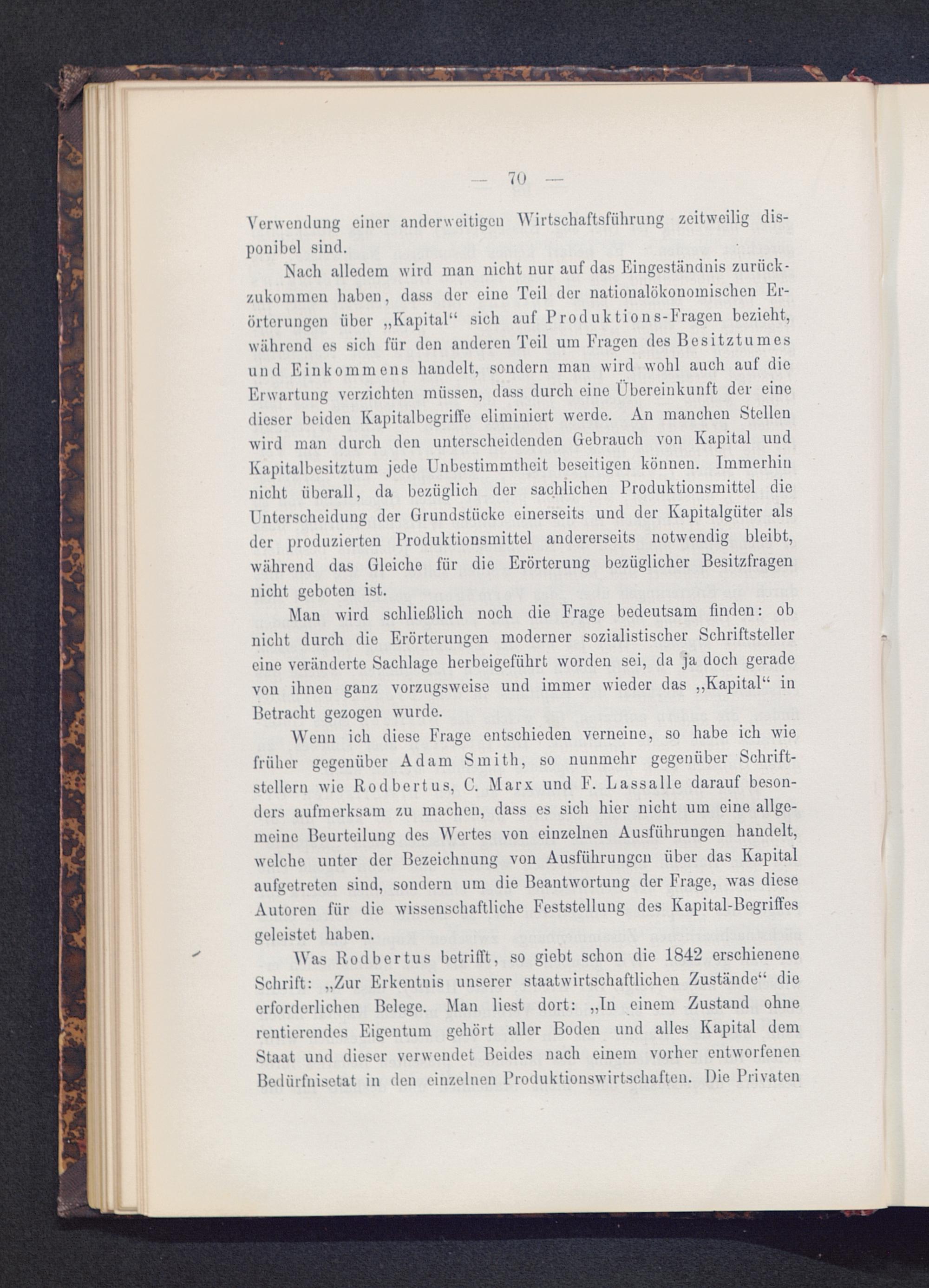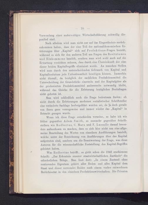 Wenn ich diese Frage entschieden verneine, so habe ich wiefrüher gegenüber Adam Smith, so nunmehr gegenüber Schrift-stellern wie Rodbertus, C. Marx und F. Lassalle darauf beson-ders aufmerksam zu machen, dass es sich hier nicht um eine allge-meine Beurteilung des Wertes von einzelnen Ausführungen handelt,welche unter der Bezeichnung von Ausführungen über das Kapitalaufgetreten sind, sondern um die Beantwortung der Frage, was dieseAutoren für die wissenschaftliche Feststellung des Kapital-Begriffesgeleistet haben.