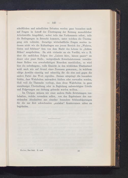 Im Übrigen müssen wir einer andern Stelle Erörterungen Vor-behalten, welche versuchen sollen, von den Ergebnissen des vor-stehenden Abschnittes aus einzelne besondere Schlussfolgerungenfür die zur Zeit schwebenden „sozialen“ Kontroversen näher zubegründen.