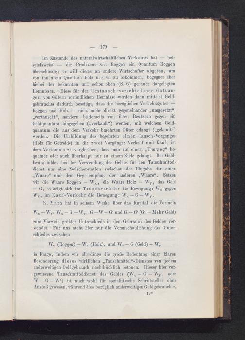 in Frage, indem wir allerdings die große Bedeutung einer klarenBesonderung dieses wirklichen „Tauschmittel“-Dienstes von jedemanderweitigen Geldgebrauch nachdrücklich betonen. Dieser hier vor-gewiesene Tauschmitteldienst des Geldes (W x — G — W y , oderW — G — W') ist auch wohl für sozialistische Schriftsteller ohneAnstoß gewesen, während dies bezüglich anderweitigen Geldgebrauches,