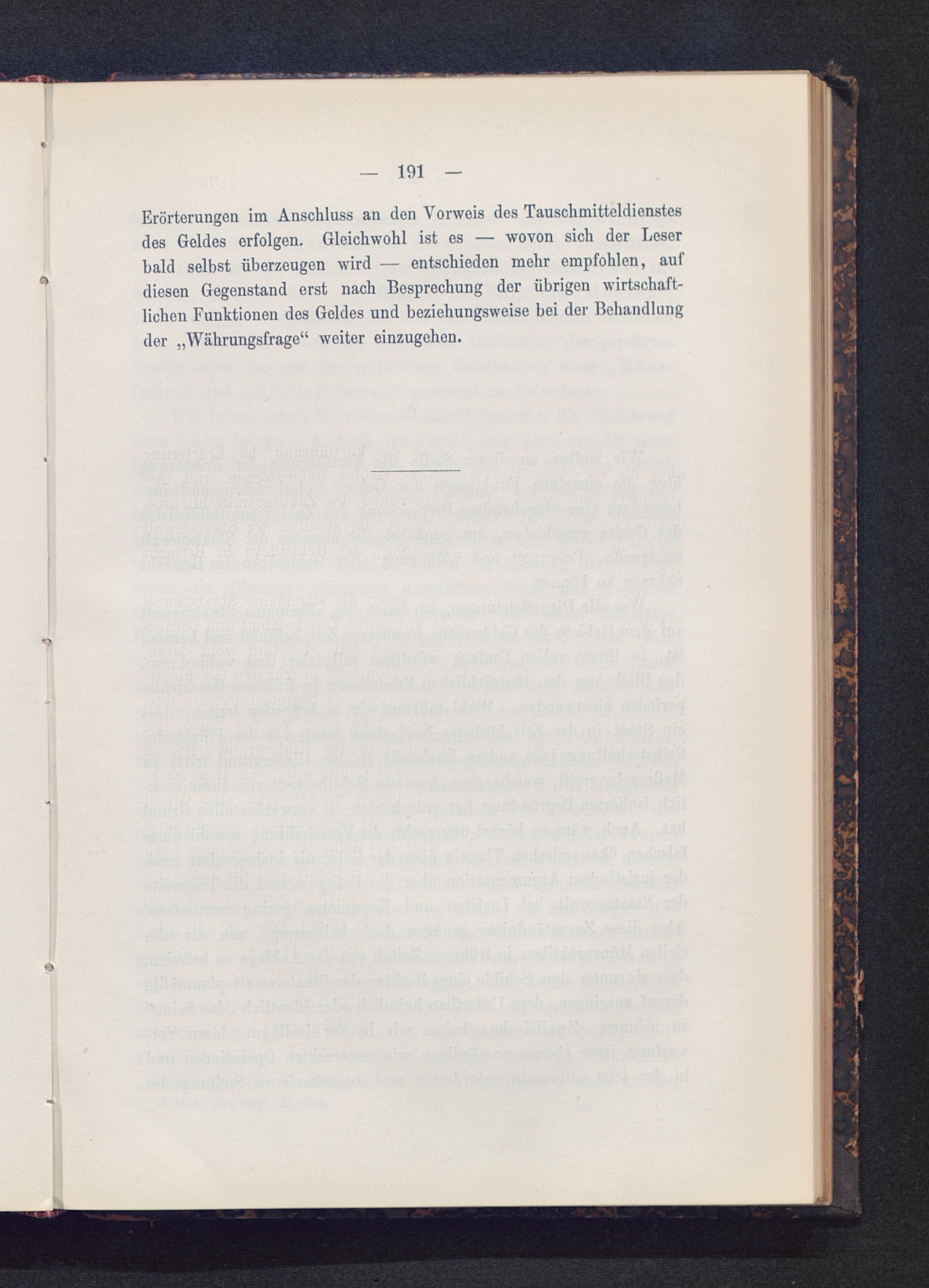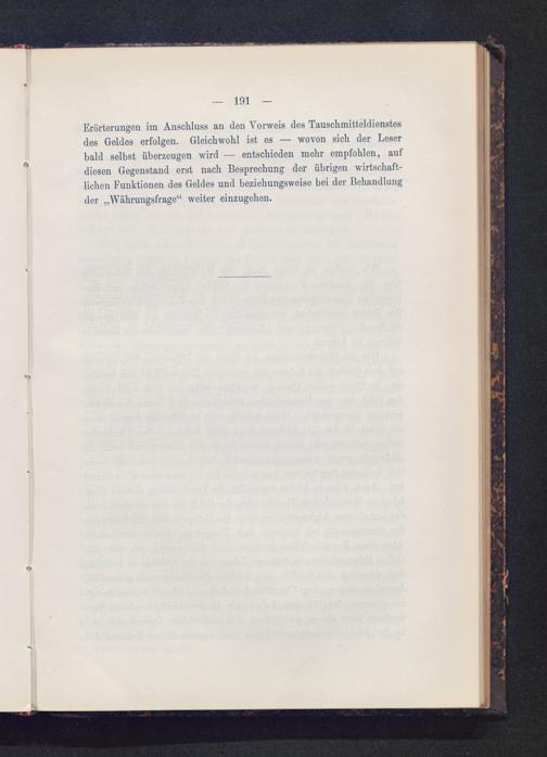 Erörterungen im Anschluss an den Vorweis des Tauschmitteldienstesdes Geldes erfolgen. Gleichwohl ist es — wovon sich der Leserbald selbst überzeugen wird — entschieden mehr empfohlen, aufdiesen Gegenstand erst nach Besprechung der übrigen wirtschaft-lichen Funktionen des Geldes und beziehungsweise bei der Behandlungder „Währungsfrage“ weiter einzugehen.